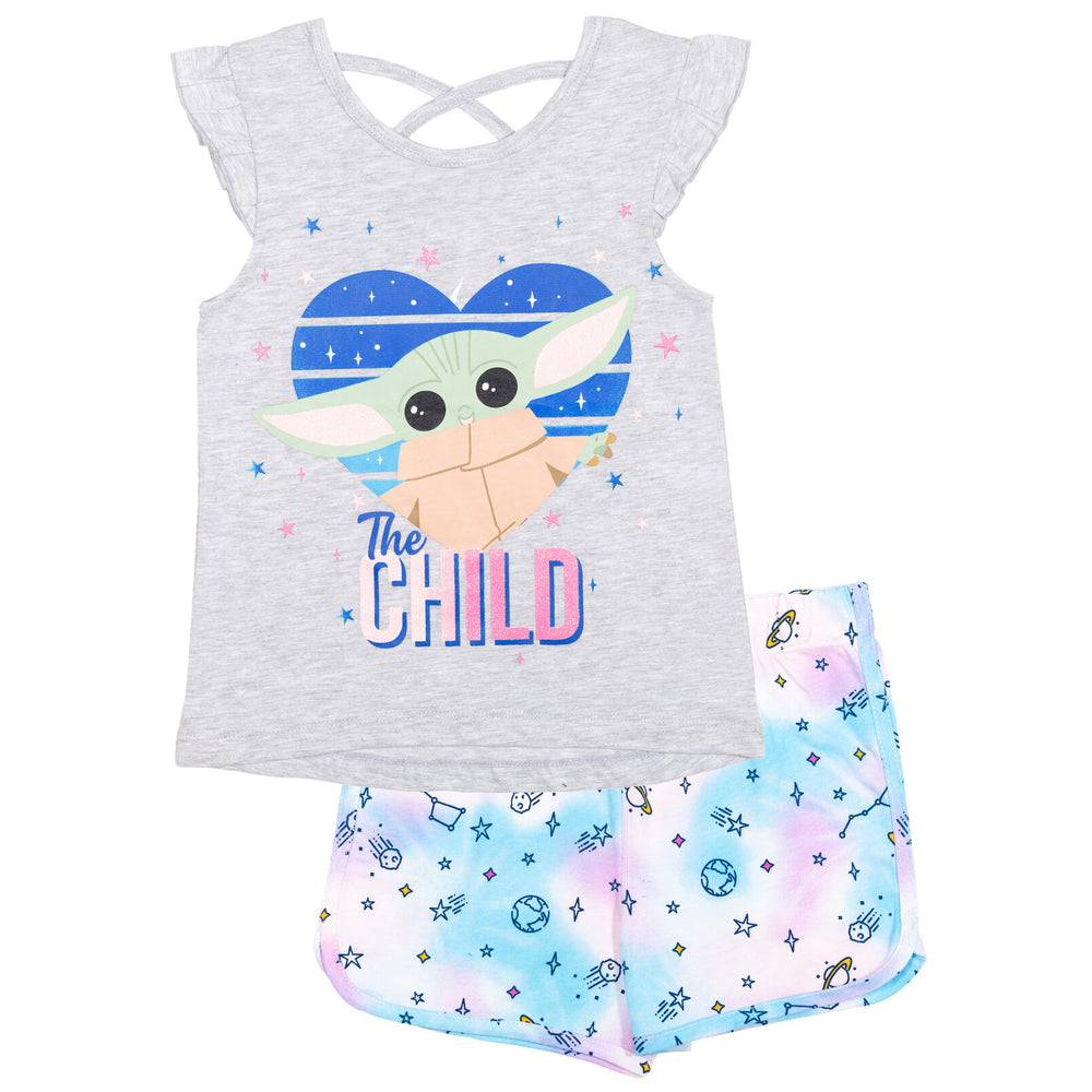 Star Wars The Mandalorian Baby Yoda 3 Piece Outfit Set: T-Shirt Legging Shorts