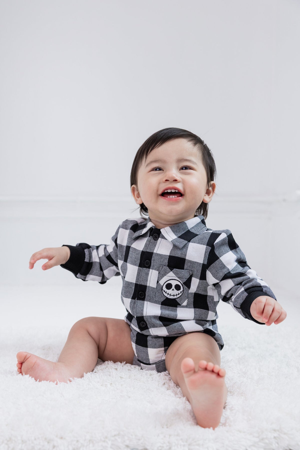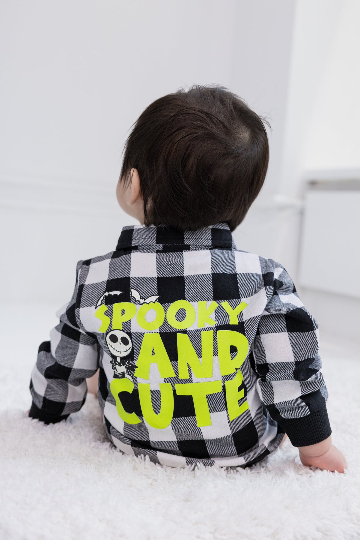 Introduce your little one to the spooky world of Halloween with this adorable Disney Nightmare Before Christmas baby plaid flannel bodysuit. Made from soft and cozy flannel material, this bodysuit is perfect for keeping your baby warm and comfortable during the chilly fall season. The black and white plaid pattern adds a touch of classic style, while the iconic Jack Skellington design adds a fun and playful twist. Available in sizes newborn to infant, this bodysuit is a must-have for any little fan of the beloved Disney movie. Get yours today and let your baby join in on the Halloween fun.
