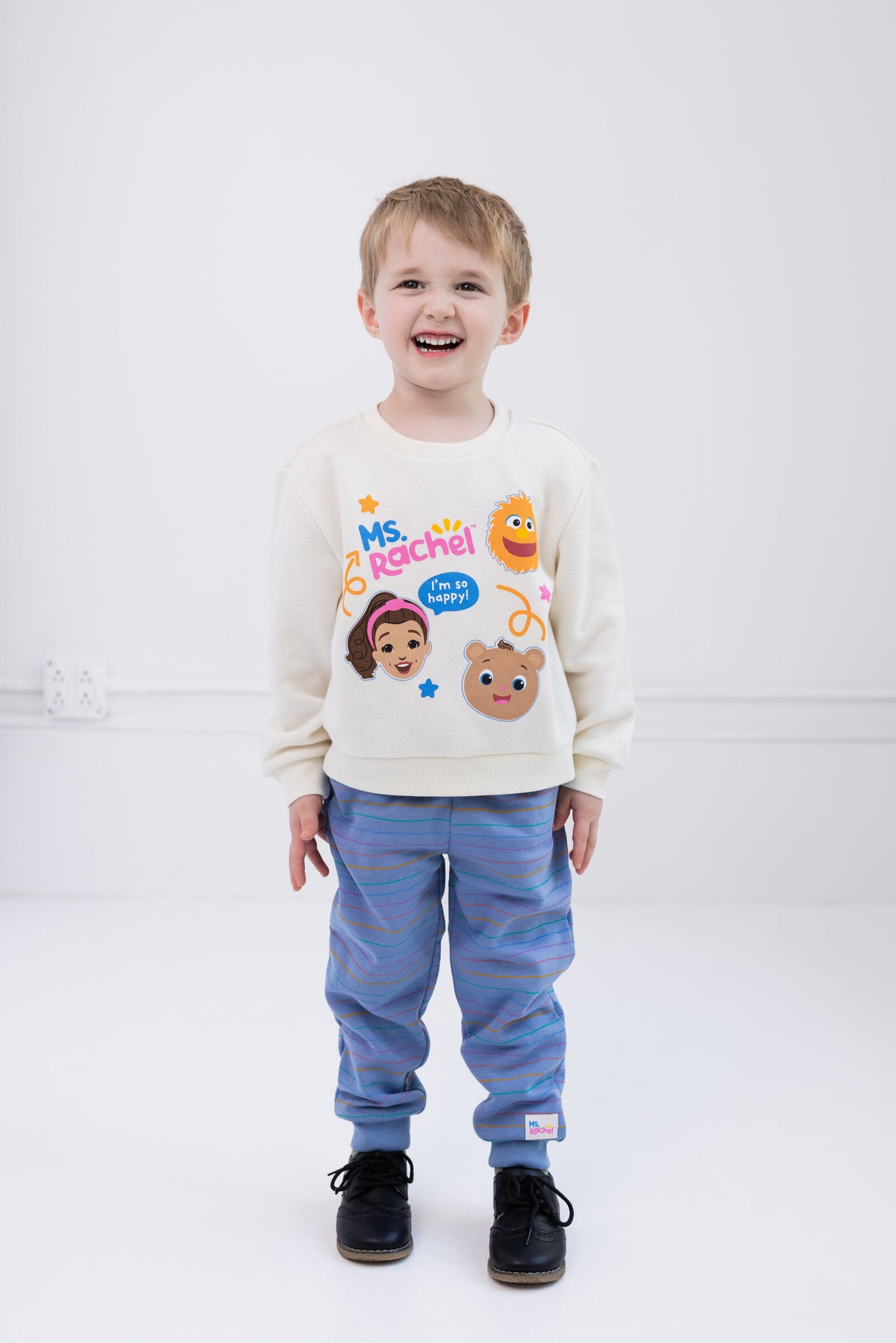 Your little one is ready to learn and play with their favorite teacher in this cute and stylish Ms Rachel outfit! This comfy long sleeve sweatshirt and jogger pants set features an easy-to-dress design and vibrant and colorful artwork of Ms. Rachel with Bean Bear and Herbie that your toddler will love to wear! Made of a soft fleece material that keeps your kid comfortable, this fashionable set is perfect for your baby to sing and dance along with Ms. Rachel!