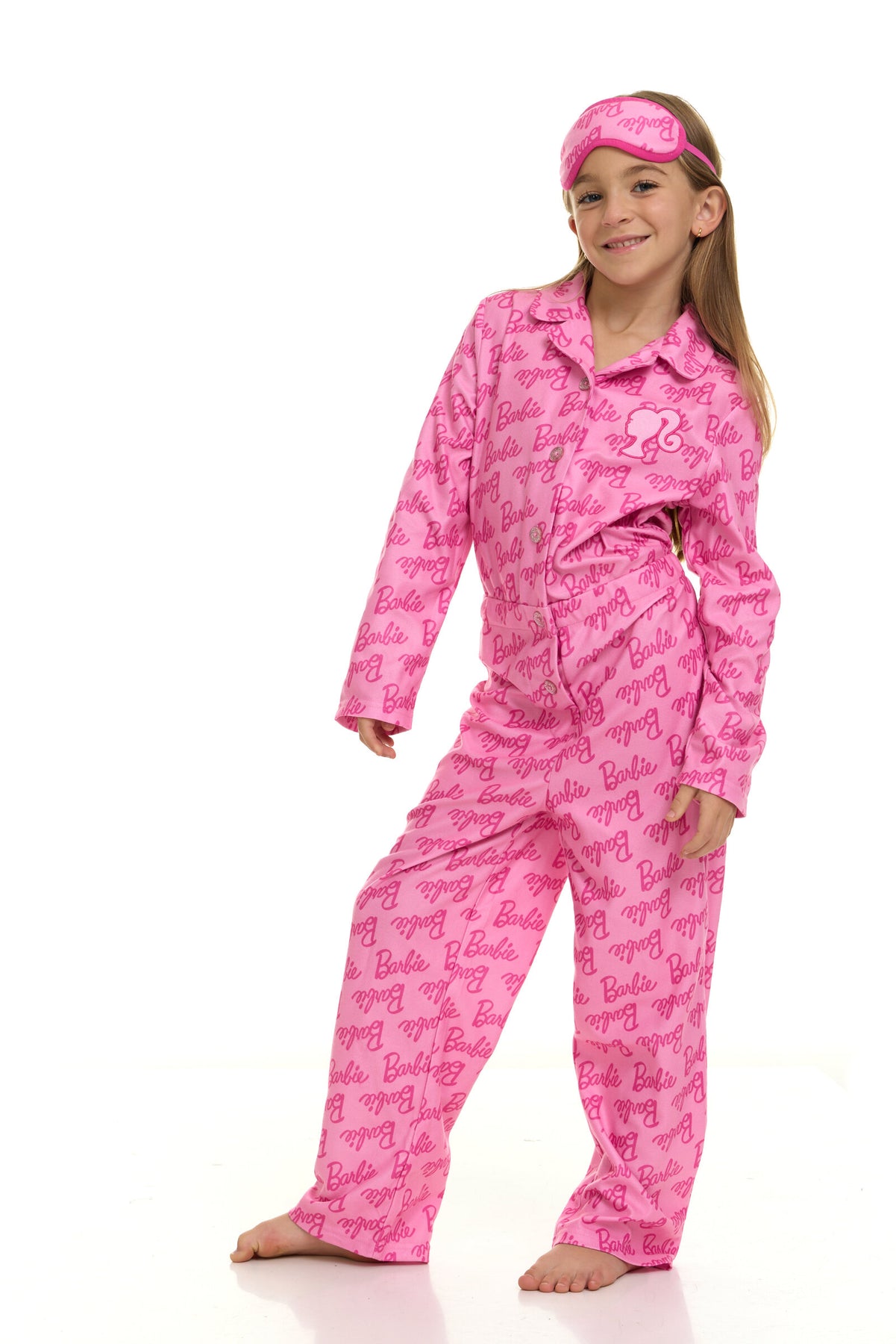 • Officially licensed Barbie little girls long sleeve one-piece sleeper pajamas and eye mask for sleeping