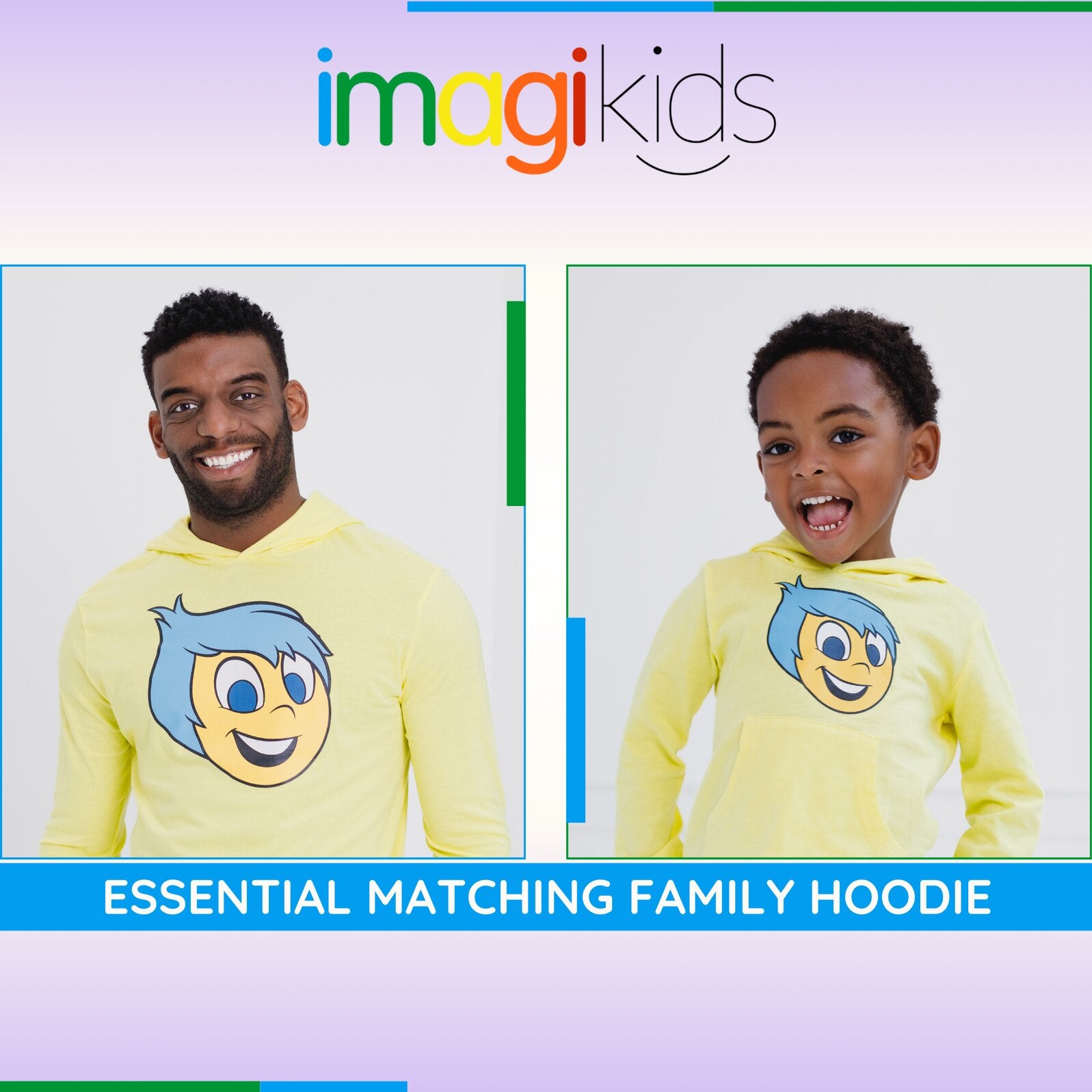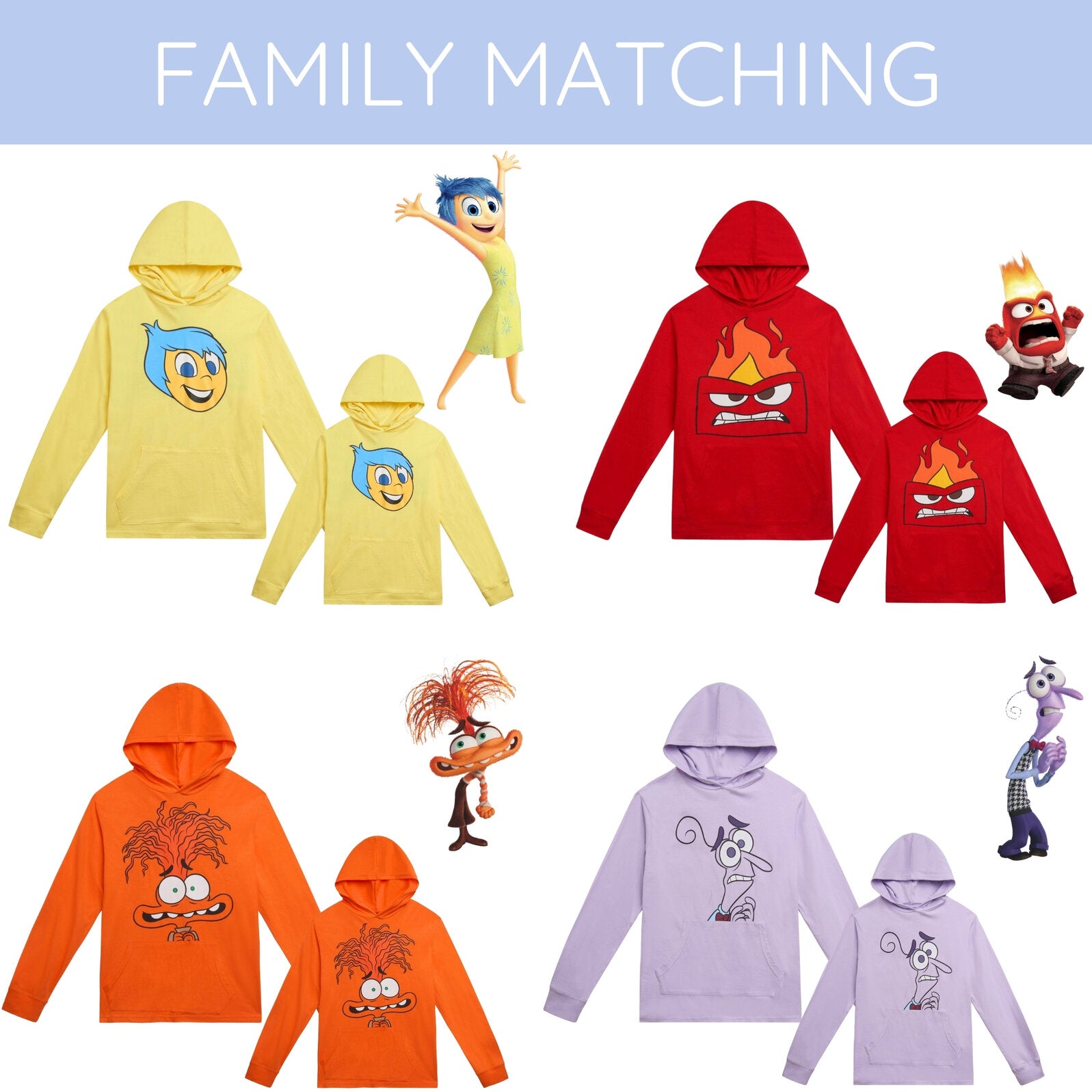 Your family is ready to create new memories with the help of their very own team of emotions in these stylish family matching Inside Out hooded t-shirts! These soft and comfy long sleeve shirts come in toddler, kids, and adult sizes and feature bright colors and cute artwork of characters from the iconic movie that you and your kids will love to wear! Represent your favorite emotions with a choice of Joy and the words "Think Positive" on the back, Anger and the words "Don't Push My Buttons," Fear with the words "Yikes Yikes Yikes," and Anxiety with the words "I'm Fine! Everything's Fine!" The whole family can join the Inside Out fun in these fashionable hoodies that are perfect for a Disney vacation trip, cute family pictures, and a cool everyday look!