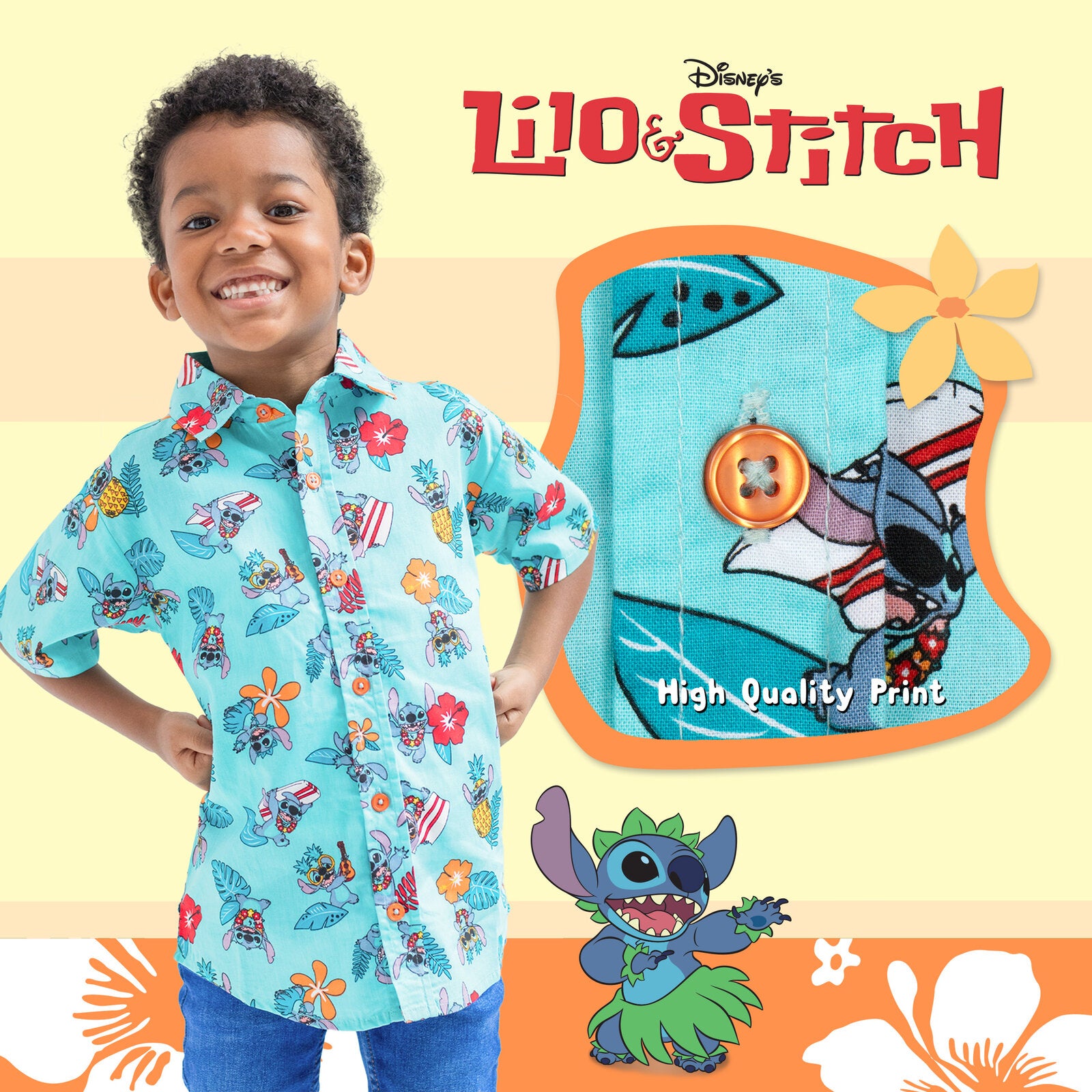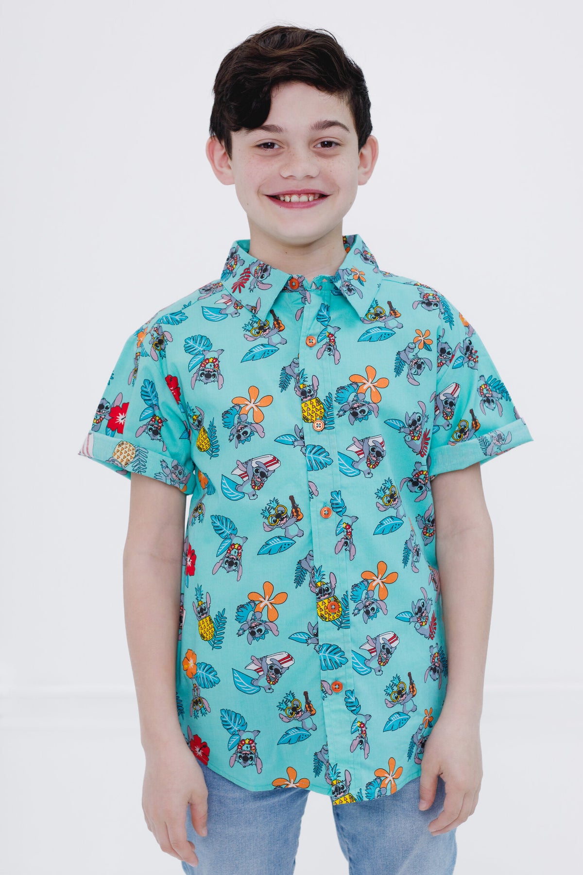 Experience tropical flair with the Disney Lilo & Stitch Hawaiian button down dress shirt. This stylish piece features vibrant designs inspired by the beloved characters, offering a playful yet sophisticated look. Perfect for fans and fashion enthusiasts alike, this shirt brings a touch of Hawaii's charm to your wardrobe.