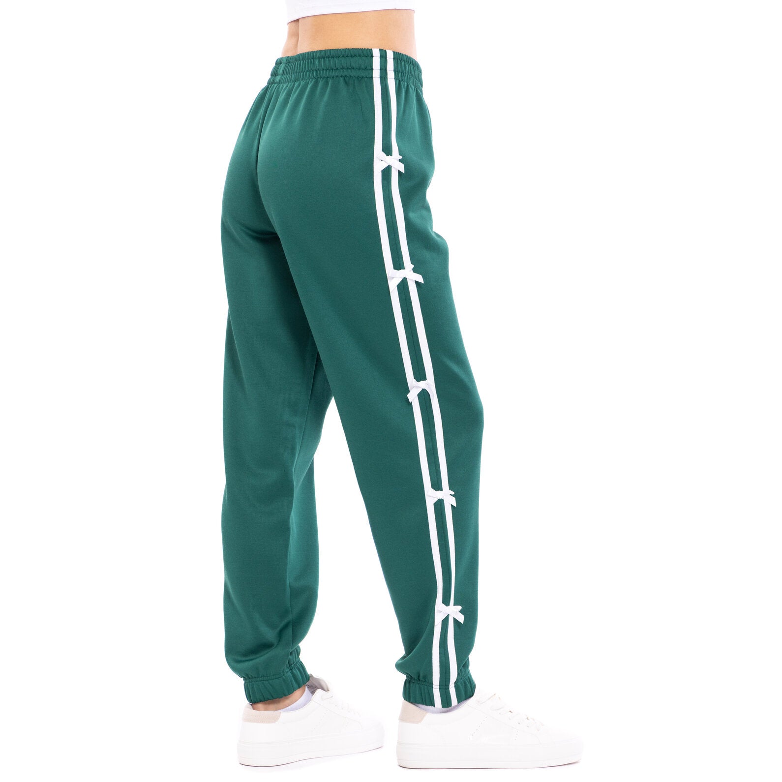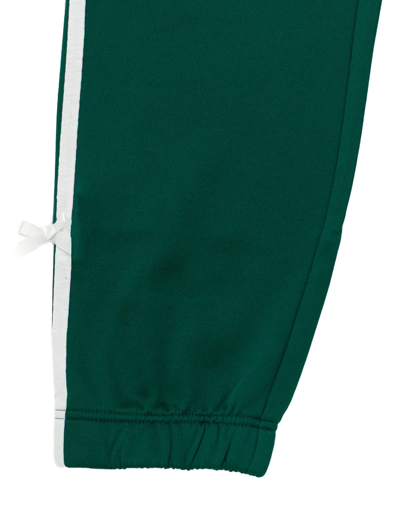 • Comfortable athletic performance material for an active lifestyle, Cool and comfy high quality fabric; Jogger style sweatpants; Soft hand screen print design; Elastic waist and elastic ankle cuffs for comfortable stretch and a better fit; Cute track suit pants for a fashionable and functional look; Contrast side stripe with 3D satin ribbon bows