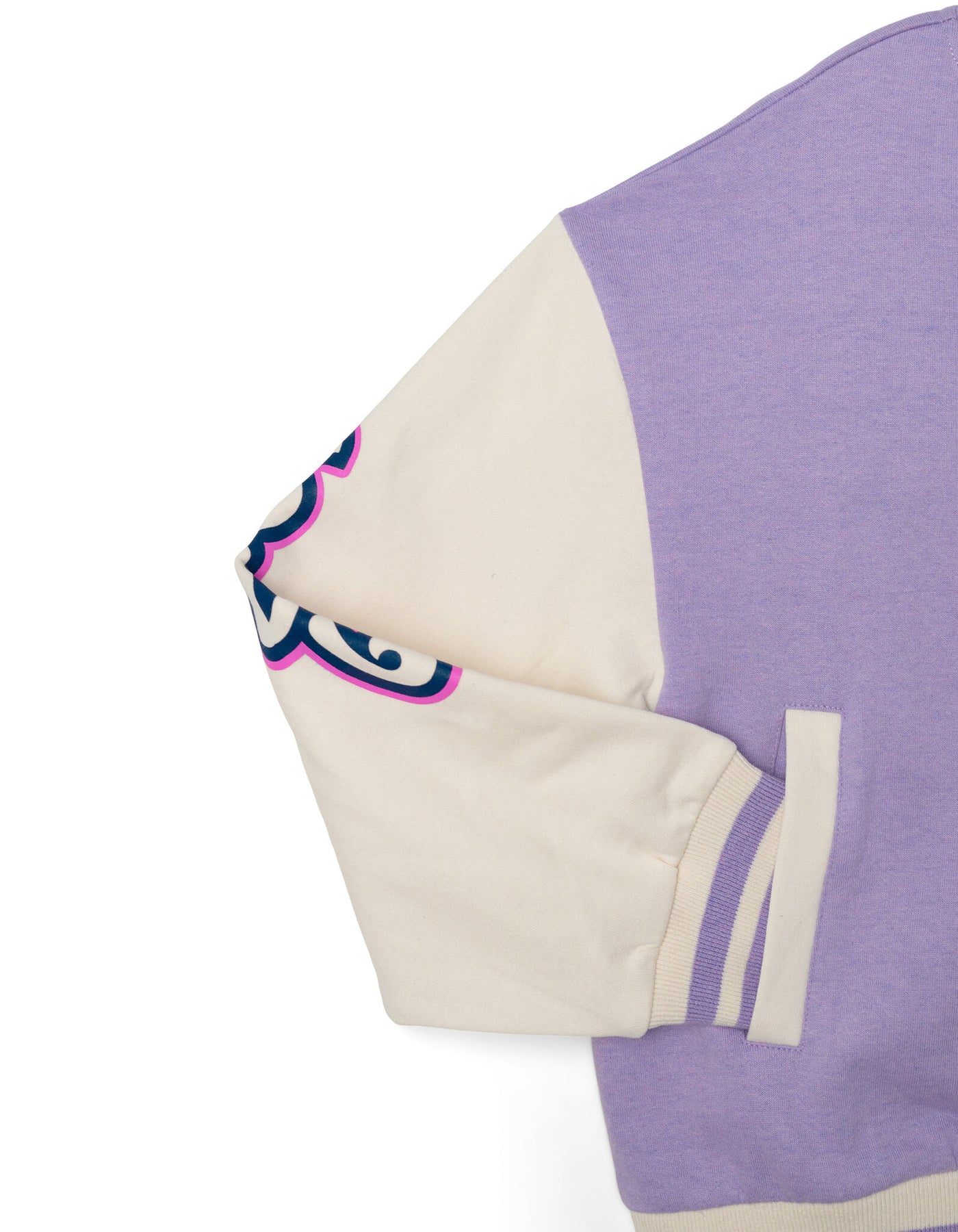 • Jogger style sweatpants; Vintage-style varsity jacket; Ribbed sleeve cuffs, ankle cuffs, and waist for a better fit; Functional pockets; Awesome screen print with puff design; Elastic waist for comfortable stretch; Drawstring closure for a secure and comfy fit; Cozy mock neck style; Snap button front closure for easy dressing; Sleeve art design; Front and back graphic