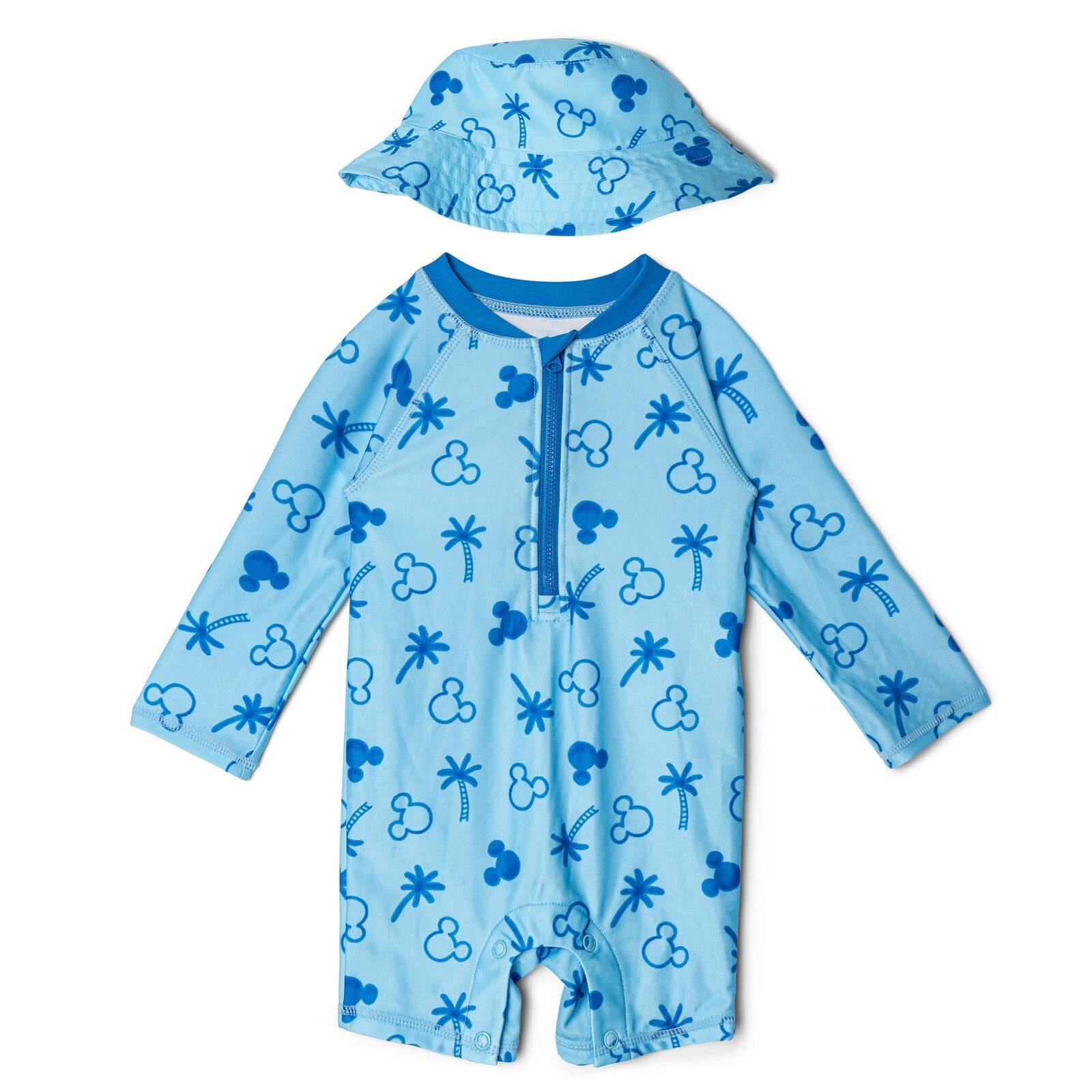 Keep your little one safe from the sun in style with this Disney Mickey Mouse Baby Sunsuit and Bucket Sun Hat Swim Set, offering UPF 50+ protection for newborns to infants. Whether splashing in the pool or playing at the beach, this adorable set featuring everyone's favorite mouse is a must-have for sunny days. Get your hands on this cute and practical ensemble that will keep your baby protected and looking cute all summer long.