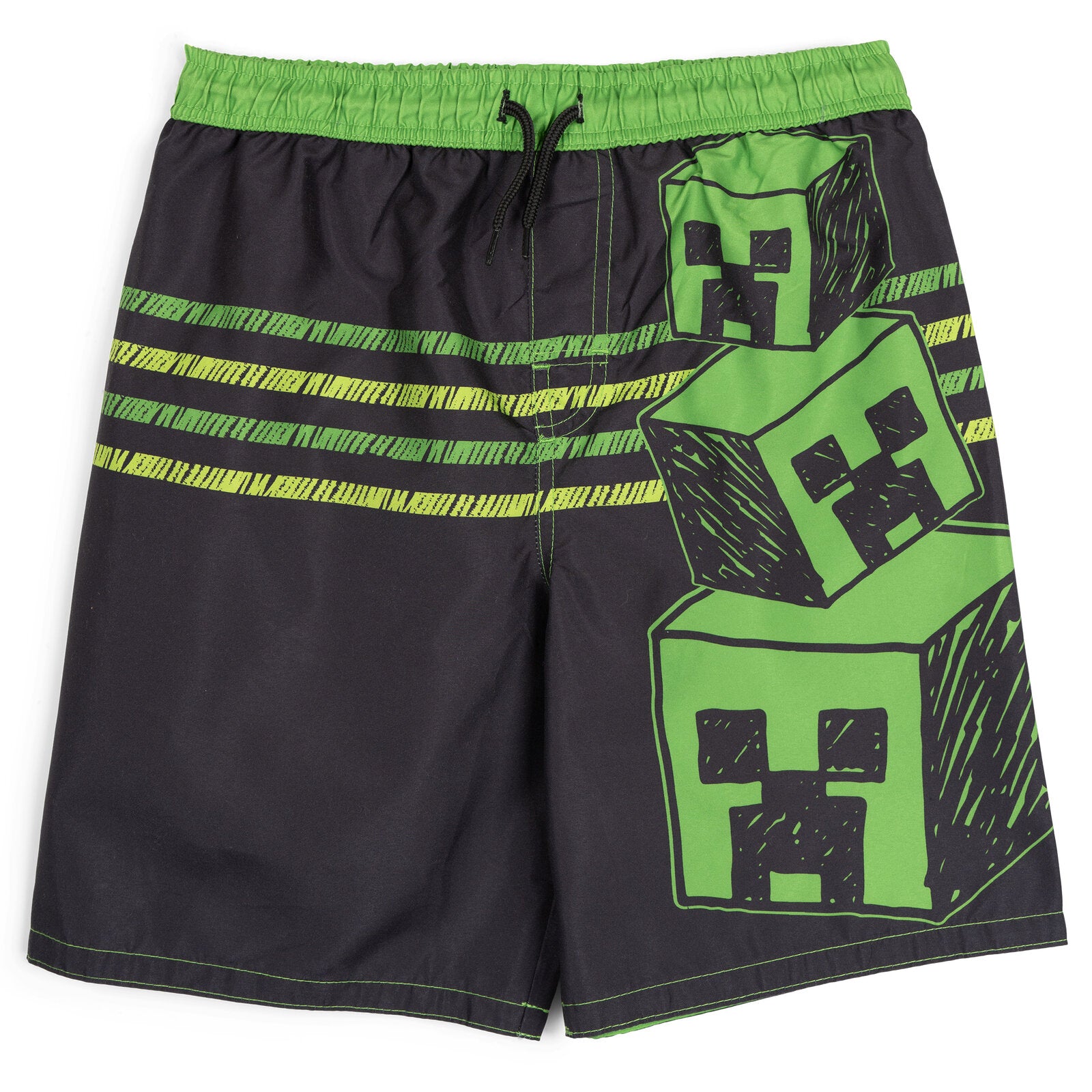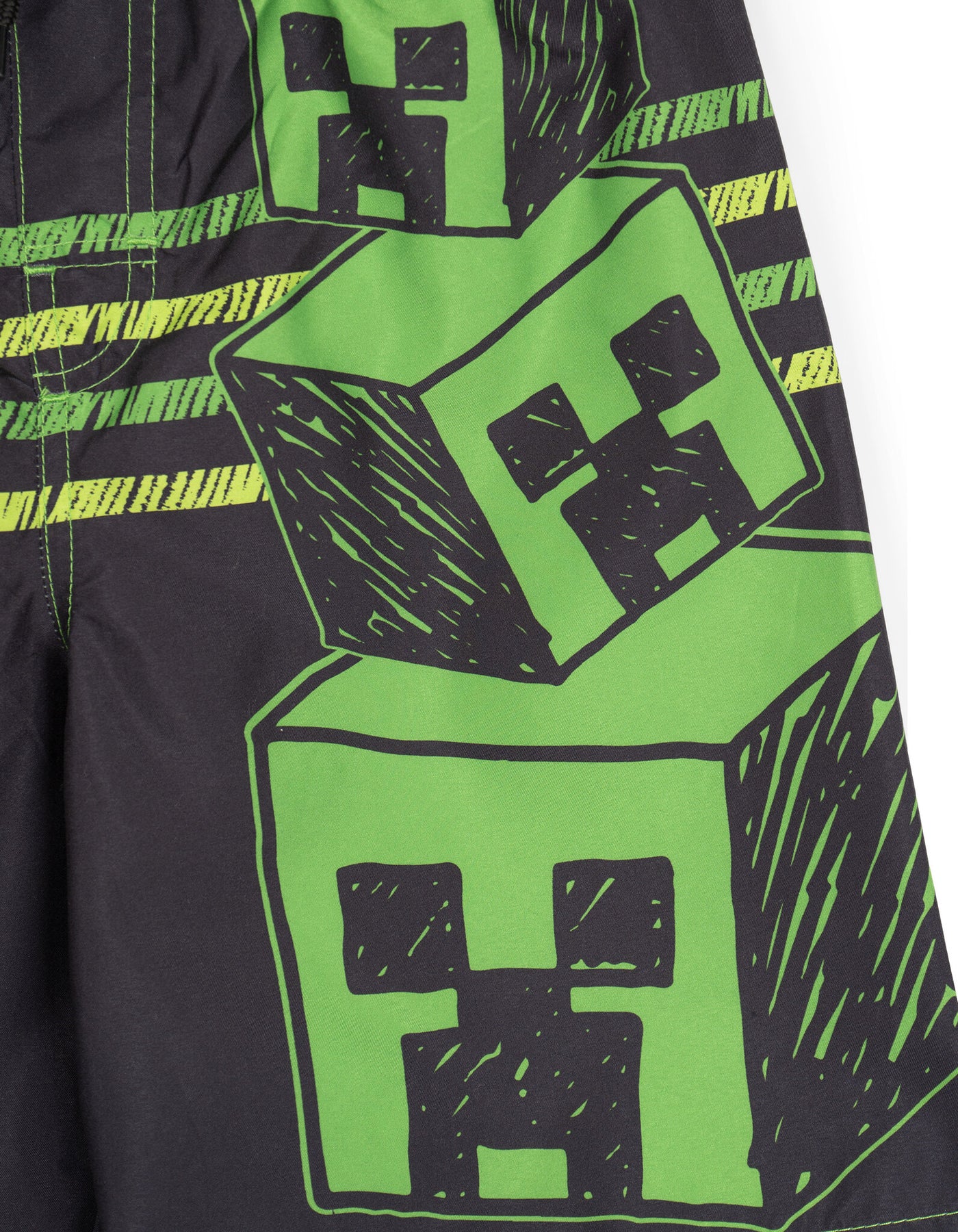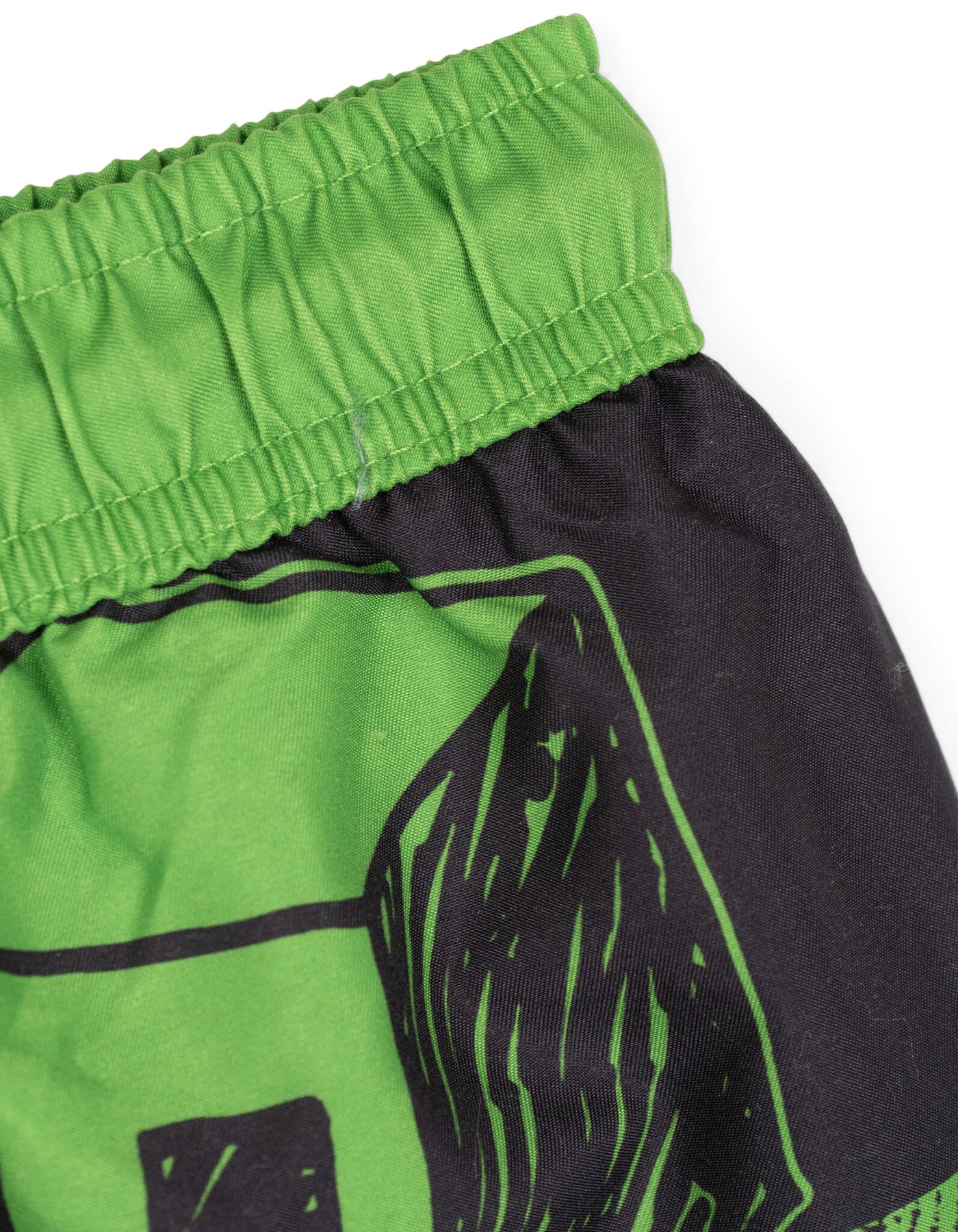 • Officially licensed Minecraft Creeper little boys collared short sleeve button down shirt and swimming shorts bottoms