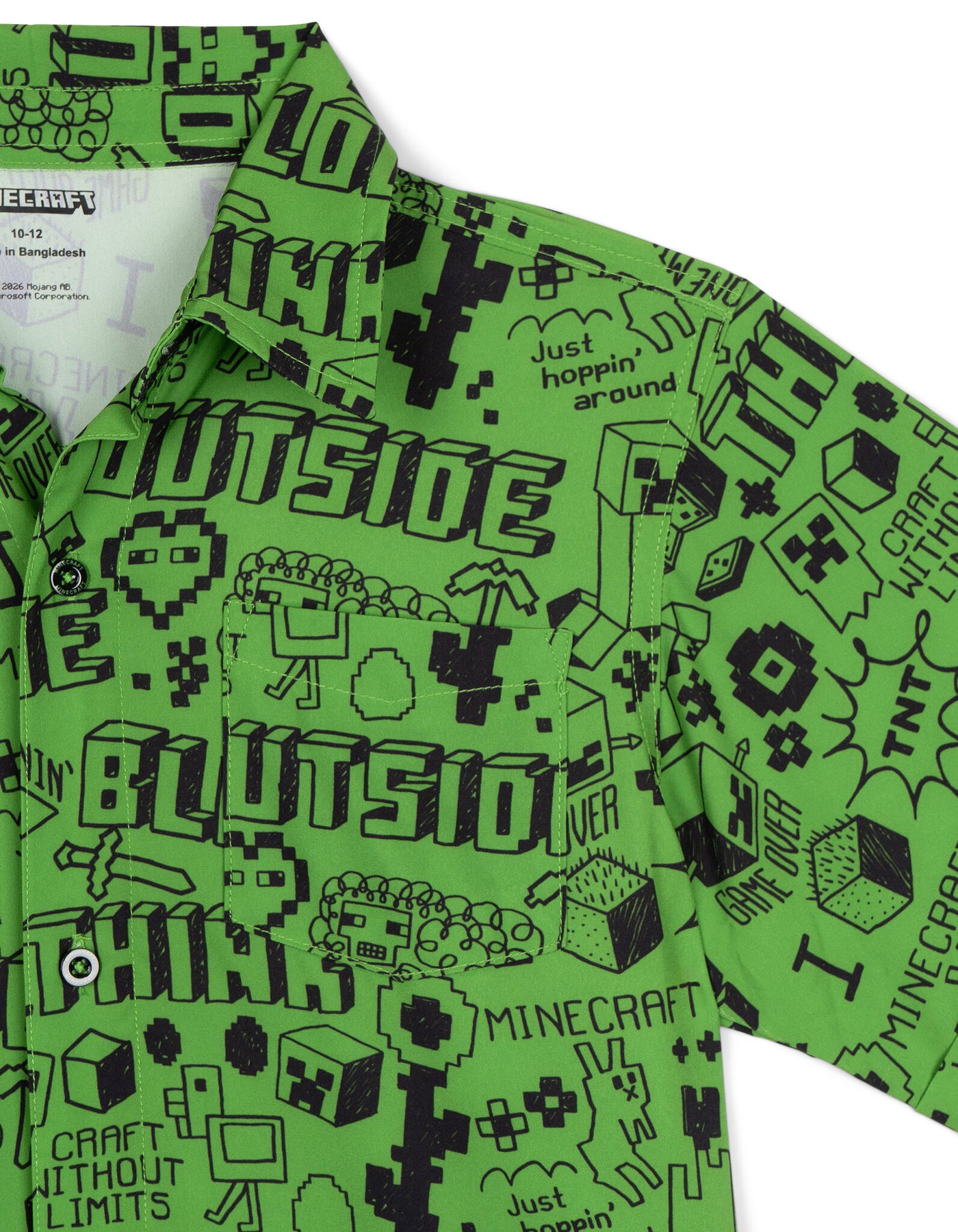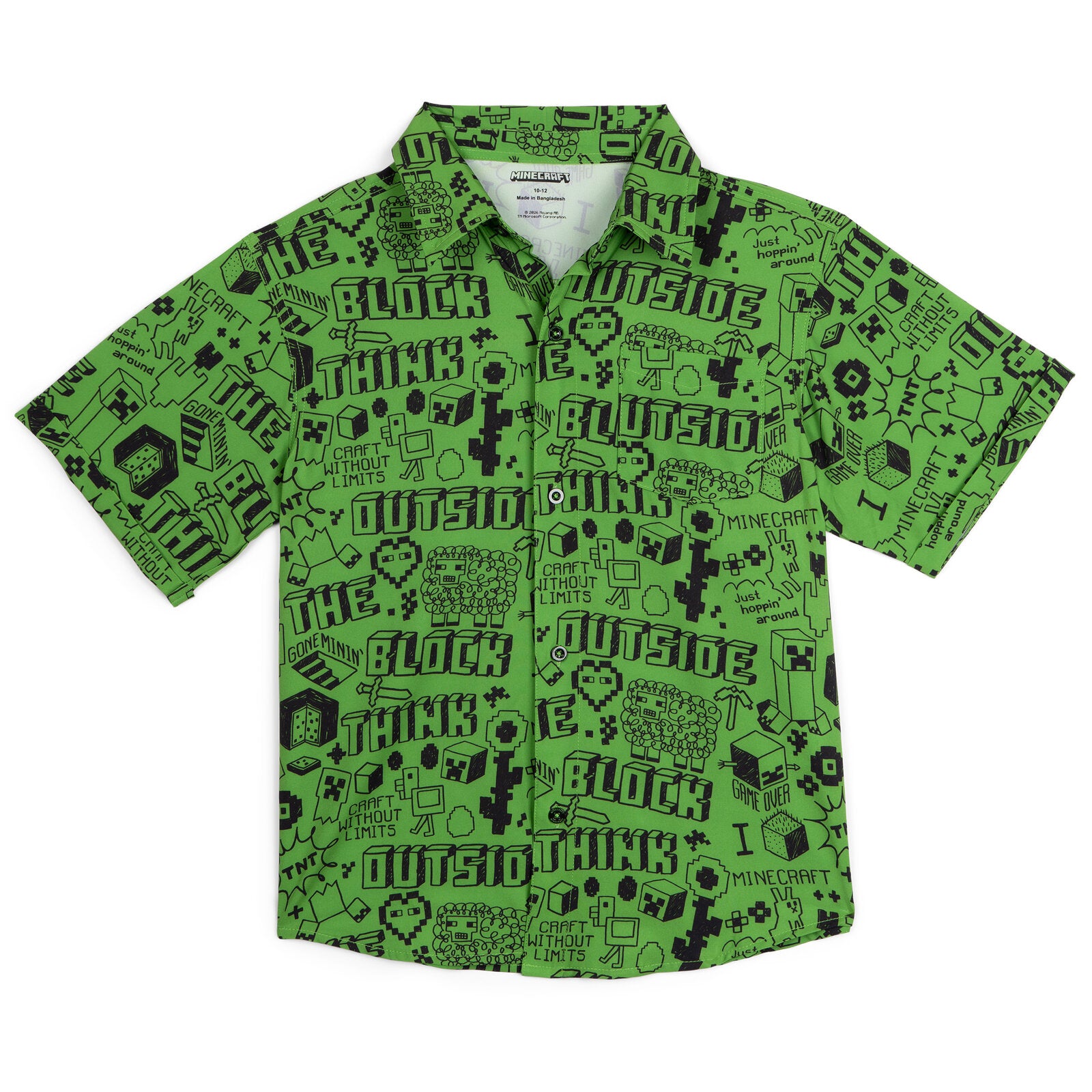 Get your little Minecraft fan ready for some pixelated adventures with this Creeper button-down shirt and swim trunks outfit set. Made with UPF 50+ sun protection, your kid can explore the virtual world while staying safe from harmful rays. Perfect for little to big kids, this set is designed for comfort and style. The iconic Creeper design will make your child stand out at the pool or beach. Upgrade your child's wardrobe with this fun and vibrant outfit set today.