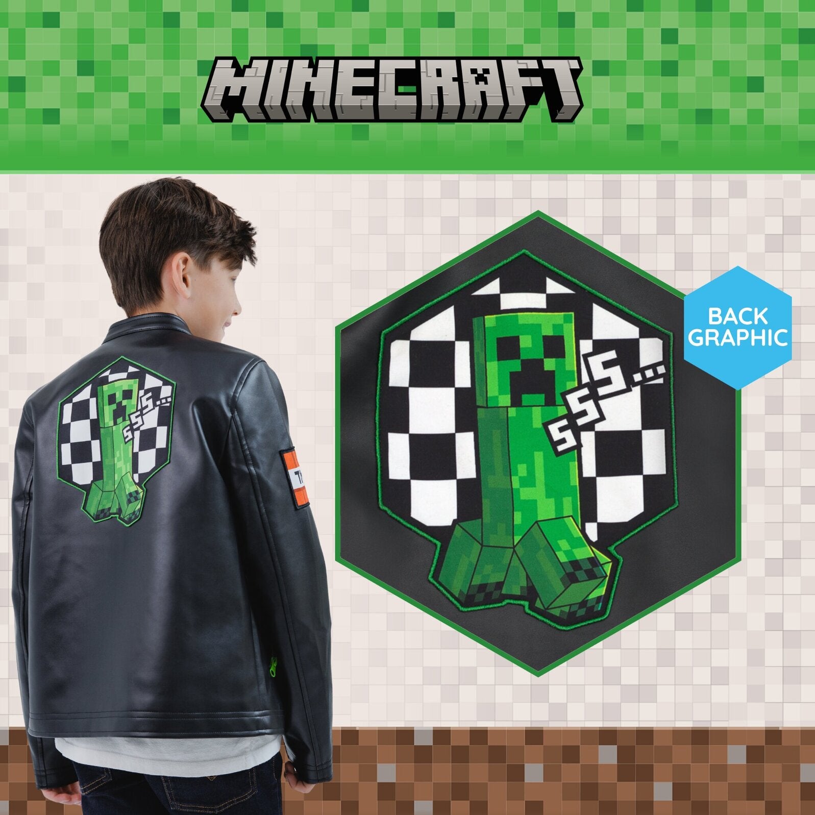 • Officially licensed Minecraft Creeper little boys faux leather motorcycle jacket
