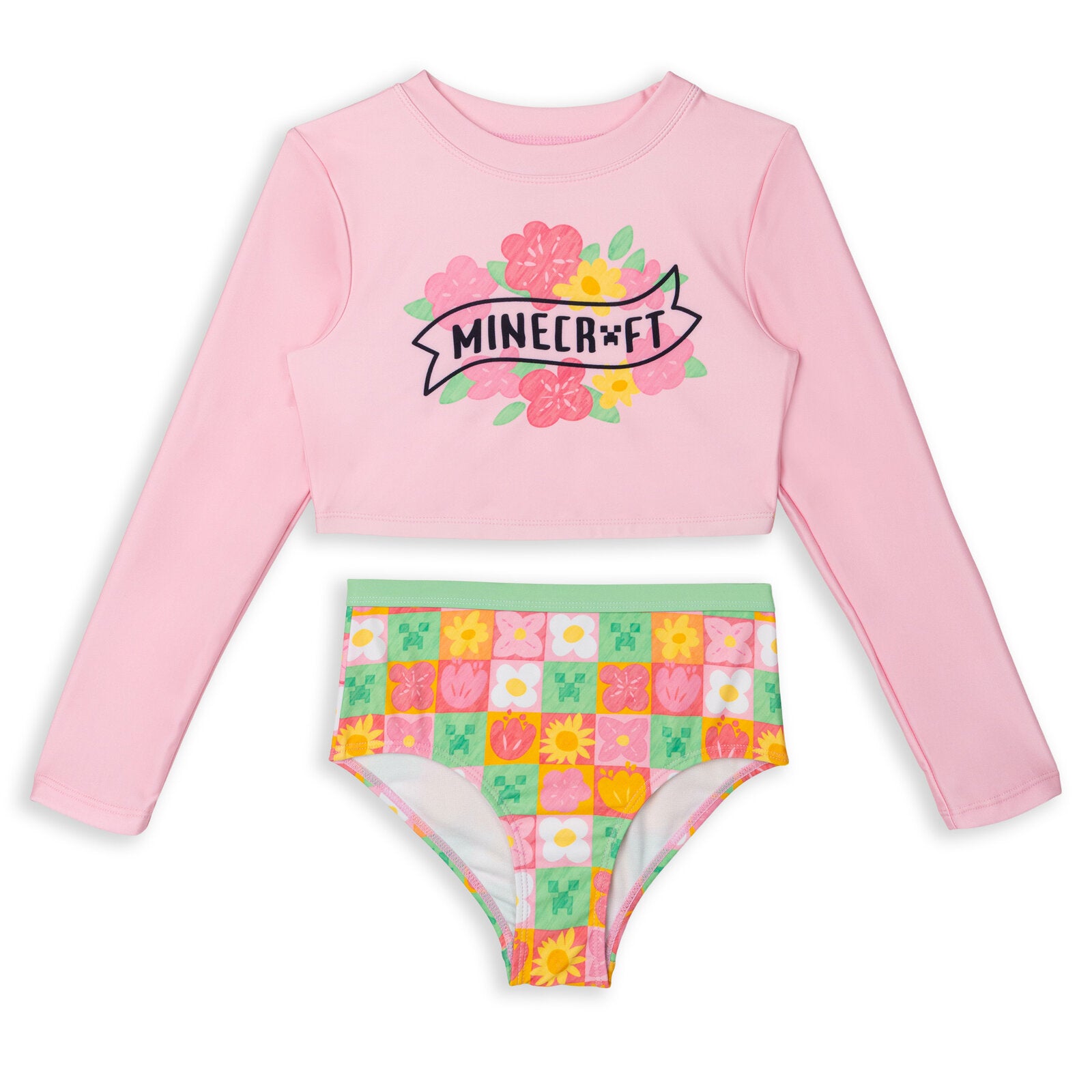 - Officially licensed Minecraft little girls long sleeve swim shirt top and full coverage bottom