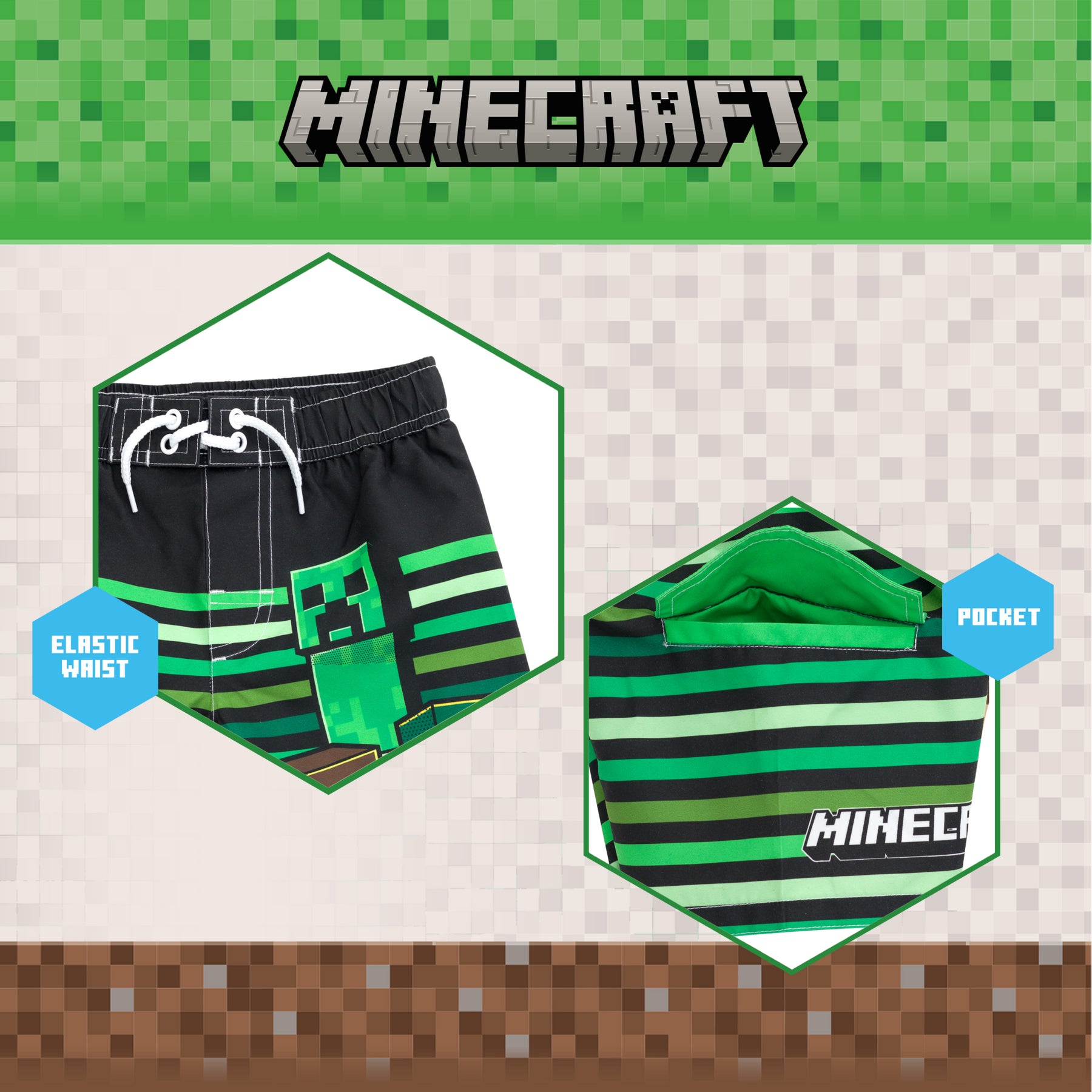 Minecraft UPF 50+ Swim Trunks Bathing Suit