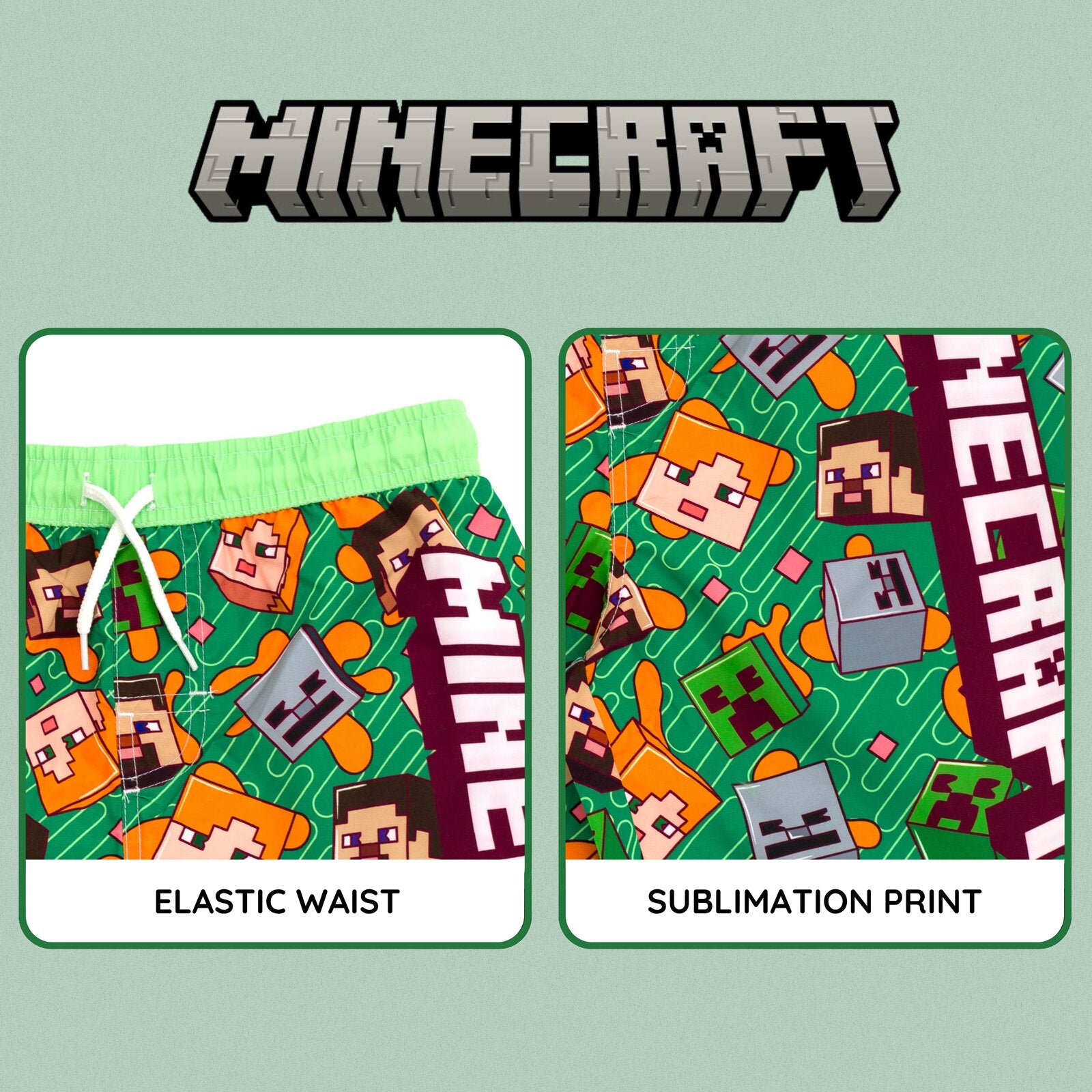 Minecraft UPF 50+ Swim Trunks Bathing Suit
