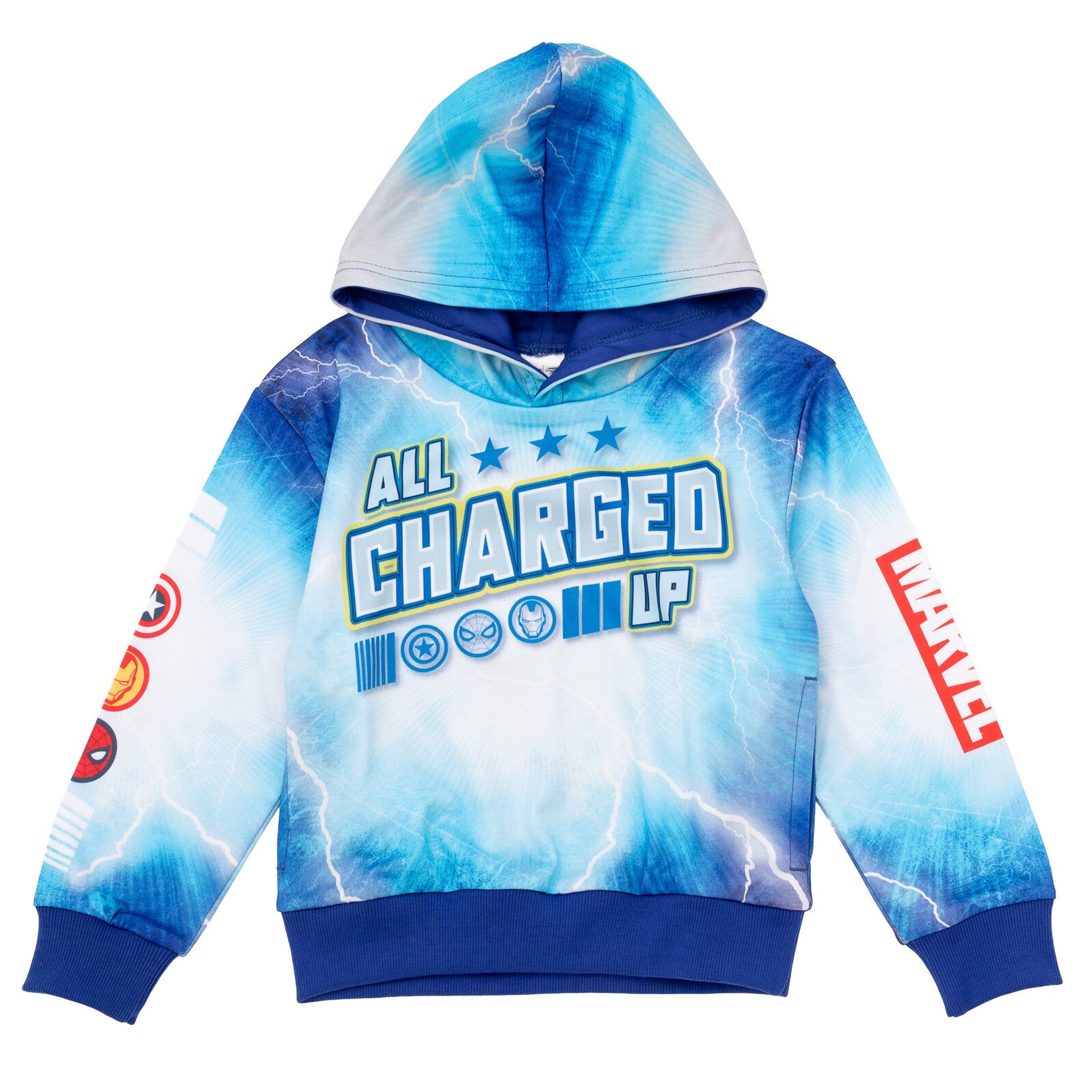 Get your little one ready for action with our Monster Jam Marvel's Monster Trucks Fleece Athletic Pullover Hoodie! Made with soft and cozy fleece material, this hoodie is perfect for keeping your child warm and comfortable while they play. Featuring their favorite Avengers superheroes, Spider-Man, Iron Man, and Captain America, this hoodie is sure to be a hit. Available in toddler to big kid sizes, it's the perfect addition to any young fan's wardrobe. Order now and let your child show off their love for Monster Jam and Marvel in style!