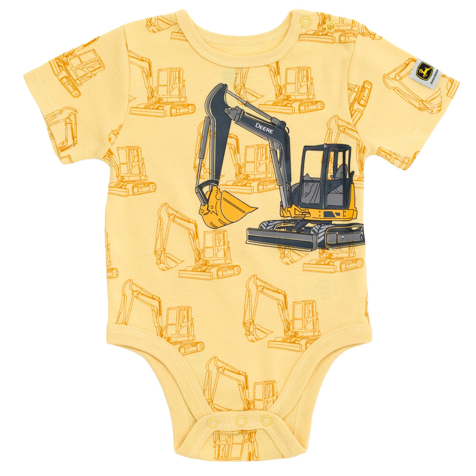 Introduce your little one to the world of John Deere with this adorable 5 pack of short sleeve bodysuits. Made from soft and comfortable fabric, these creepers feature the iconic John Deere logo and cute artwork of farm animals or tractors and construction trucks. Perfect for newborns and infants, these bodysuits are a must-have for any little John Deere fan. Whether they're playing on the farm or just lounging at home, your little one will look cute and stylish in these bodysuits. Get yours today and let your little one show off their love for John Deere.