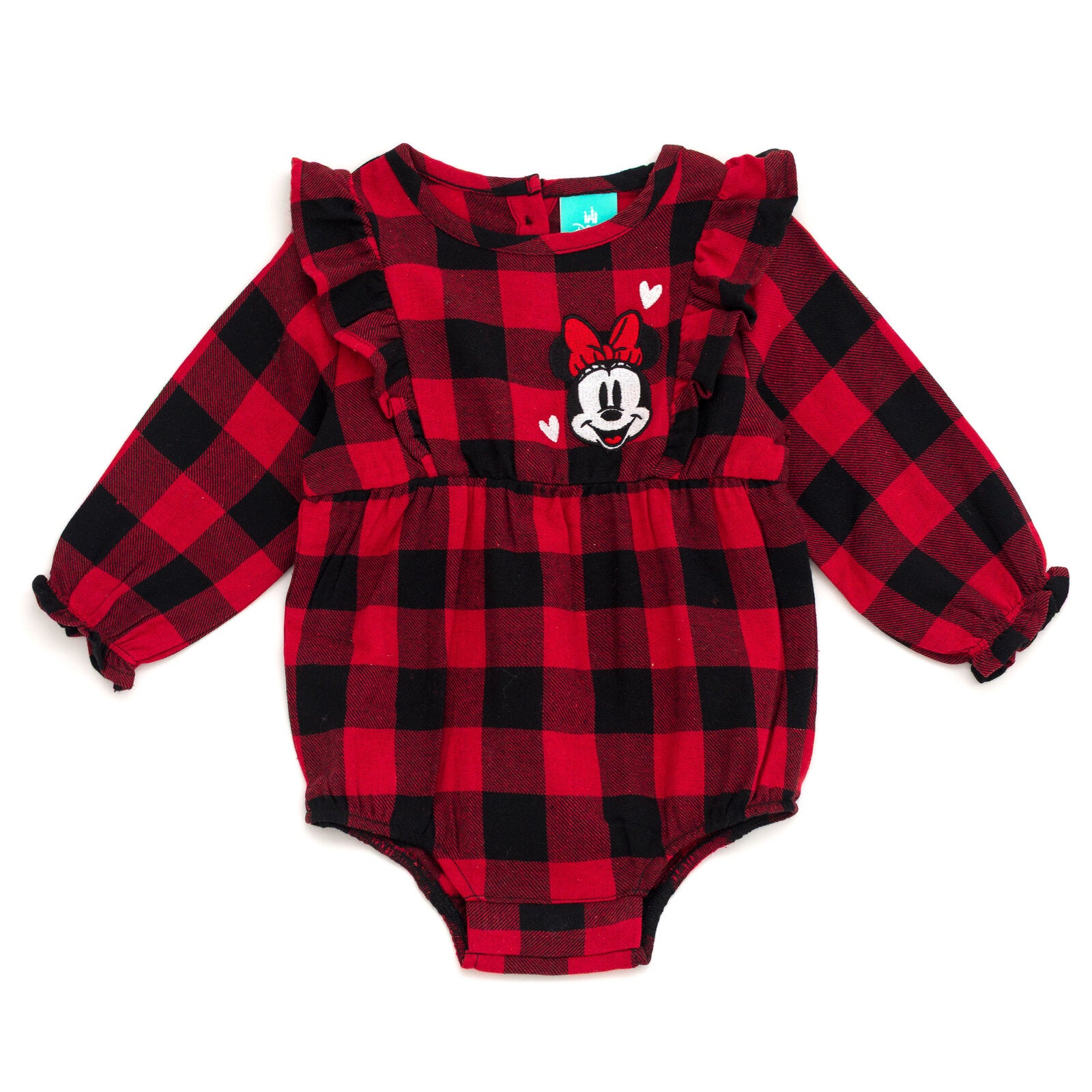 Introducing the perfect addition to your little ones wardrobe - the Disney Minnie Mouse Baby Girls Flannel Bodysuit. Made from soft and cozy flannel material, this long sleeve bodysuit is perfect for keeping your baby warm and comfortable. Featuring a stylish buffalo plaid design and adorable Minnie Mouse artwork, it's sure to be a hit with both parents and babies alike. Available in sizes for newborns to infants, this creeper is a must-have for any Disney-loving family. Don't miss out on this cute and practical piece for your little one.