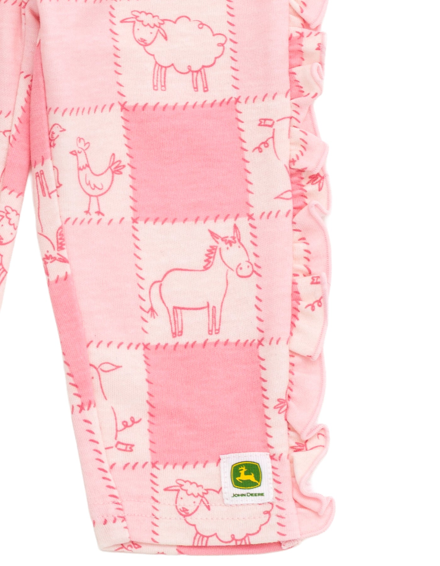 John Deere Farm Baby Girls Bodysuit, Pants and Hat 3 Piece Outfit Set Newborn to Infant