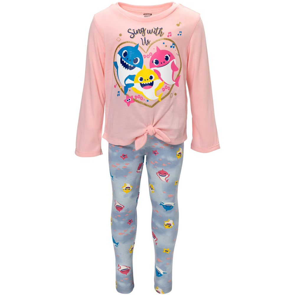 Pinkfong Baby Shark Crossover T-Shirt Leggings and Scrunchie 3 Piece Outfit Set