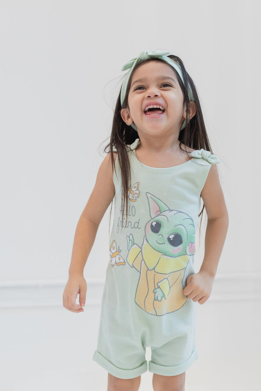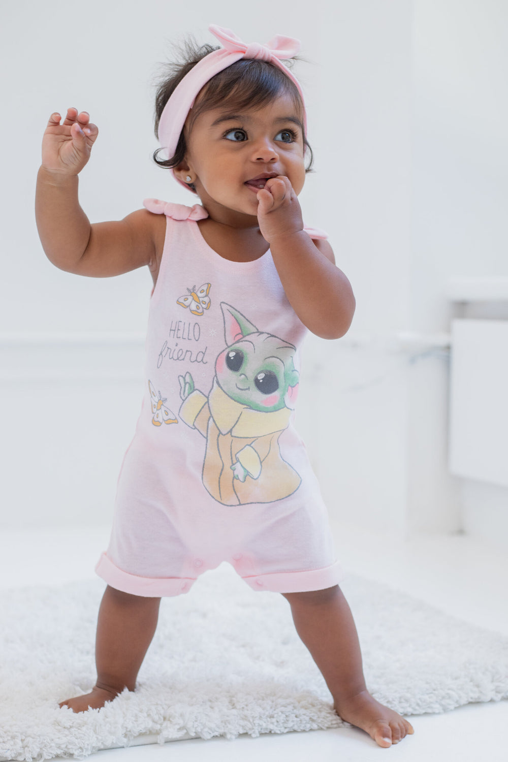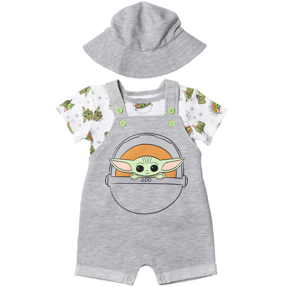 Star Wars Baby Yoda Short Overalls T-Shirt and Hat 3 Piece Outfit Set