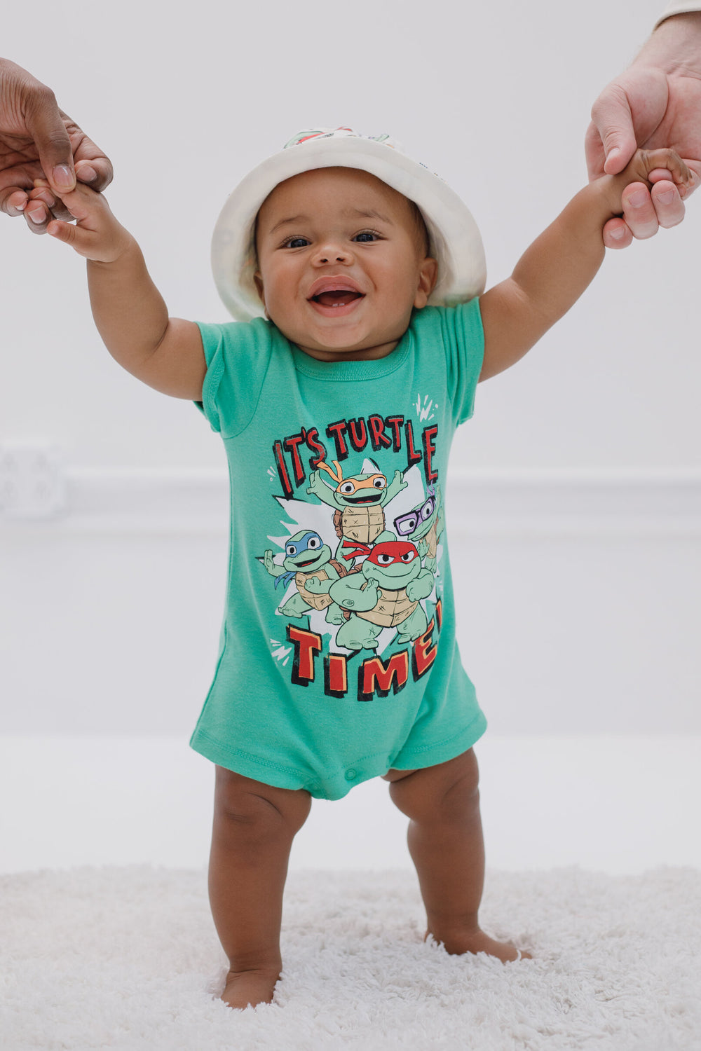 Teenage Mutant Ninja Turtles Donatello Raphael Leonardo Baby Romper and Bucket Sun Hat