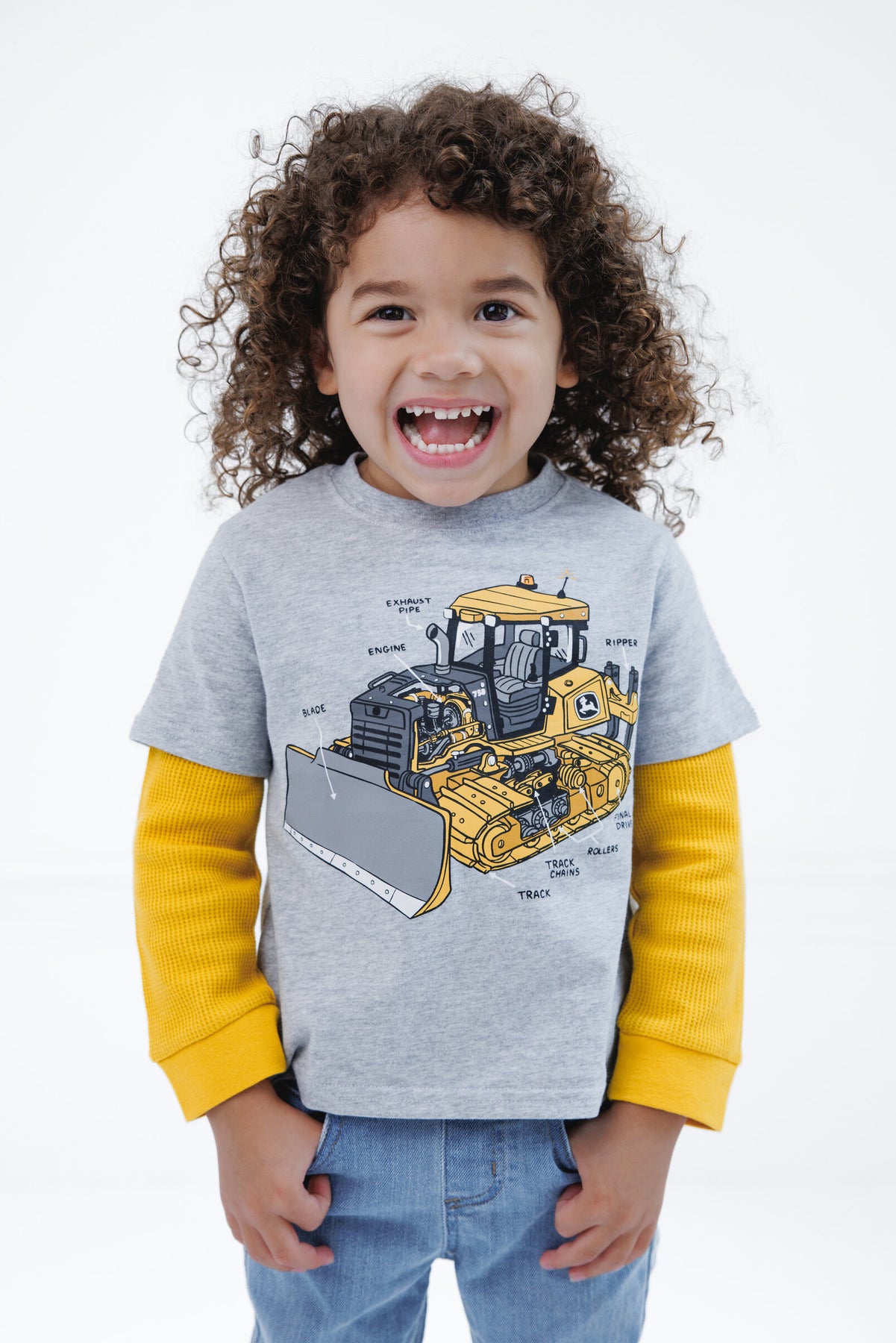 John Deere Construction 2fer Waffle Knit Long Sleeve T-Shirt Toddler to Little Kid