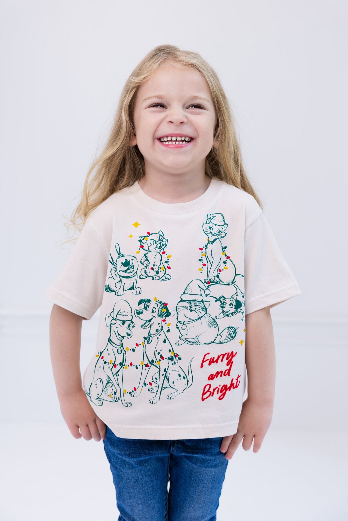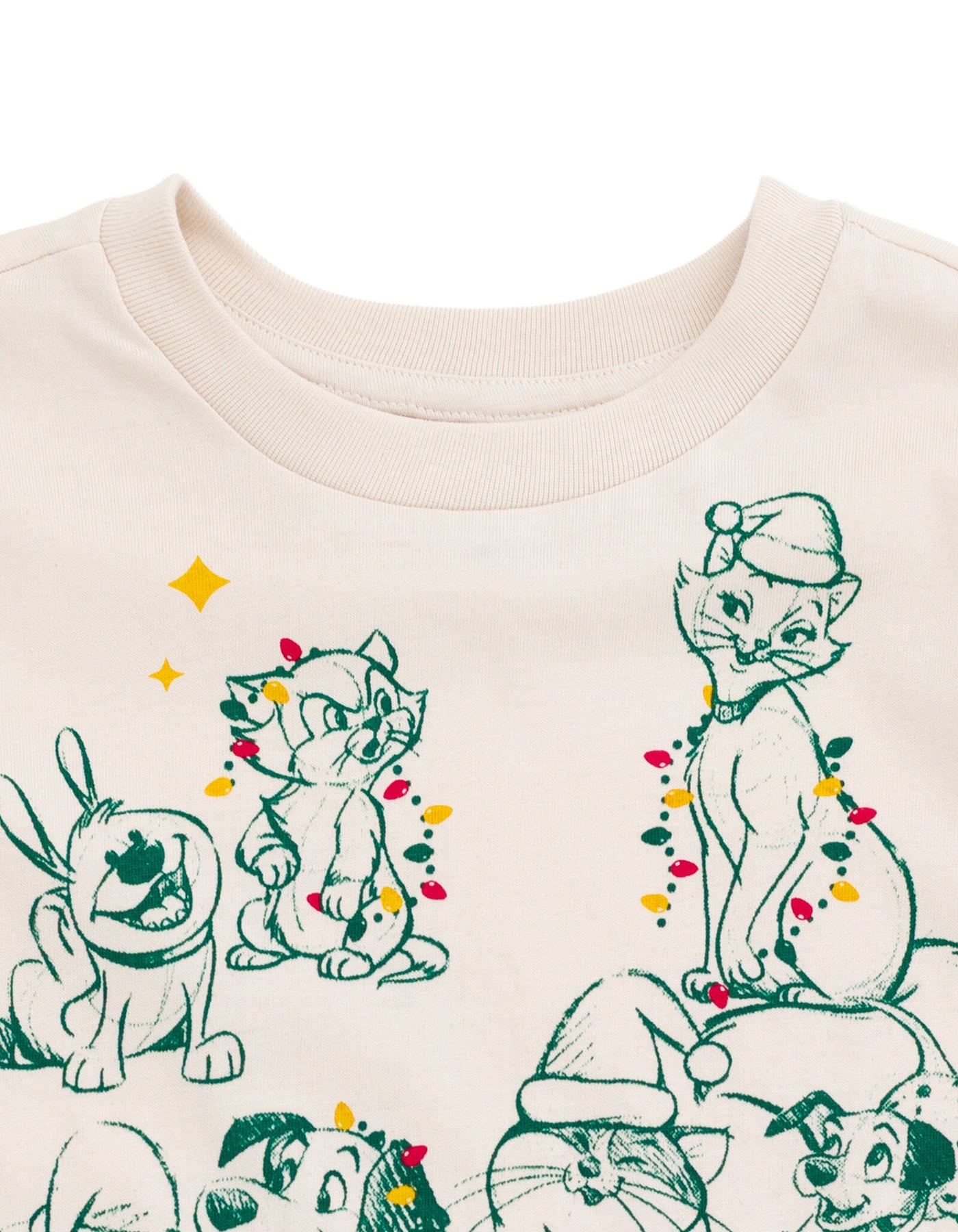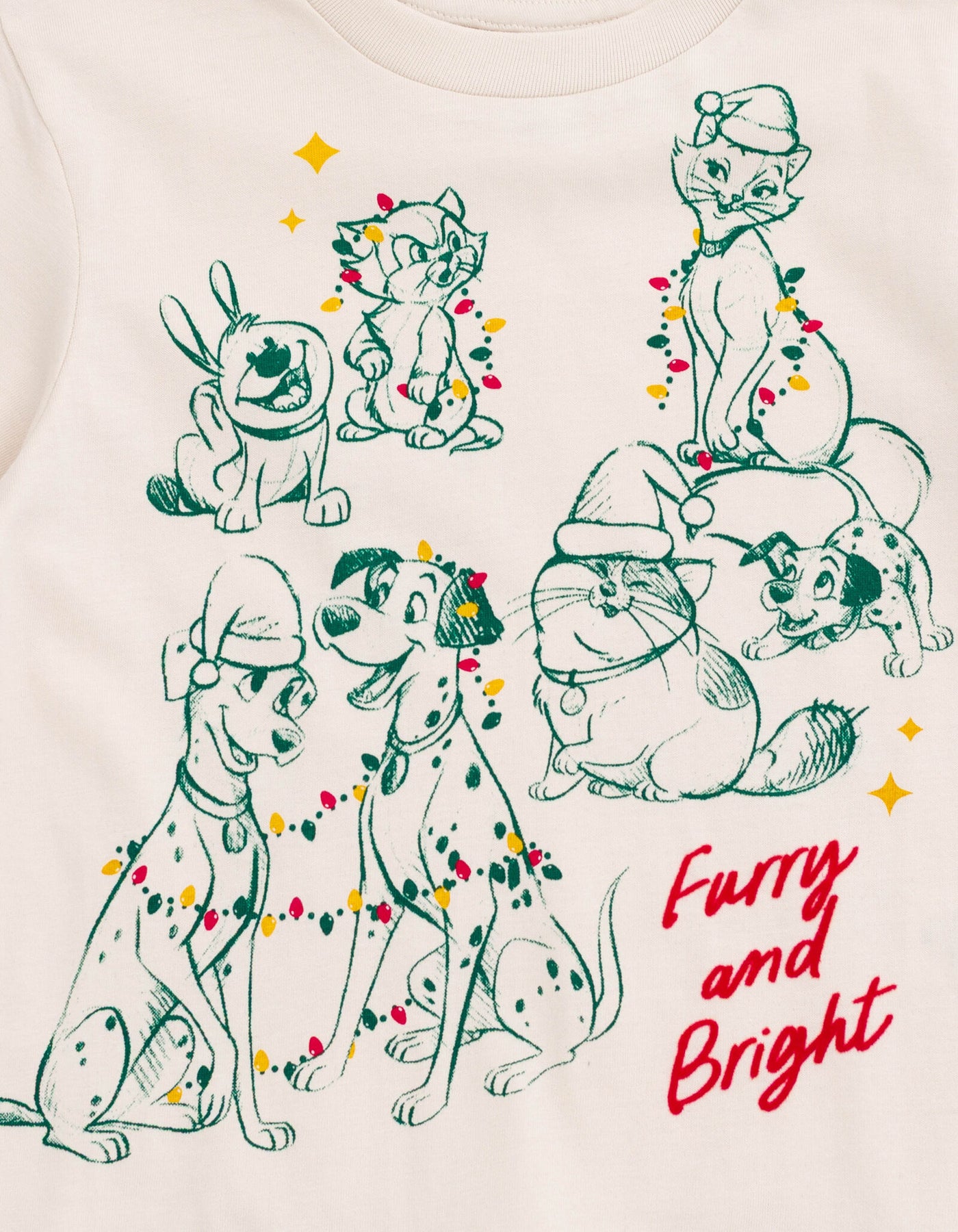 Get ready for the holiday season with this adorable Disney Classics Christmas t-shirt featuring Goofy, Figaro, Duchess and more of the iconic dog characters. Perfect for toddlers to big kids, this festive shirt is sure to be a hit. Made with high-quality materials, it's comfortable and durable for all-day wear. The vibrant colors and cute characters will make your little one stand out in any crowd. Whether they're opening presents or singing carols, this t-shirt is the perfect addition to their holiday wardrobe. Don't miss out on this must-have Disney classic.
