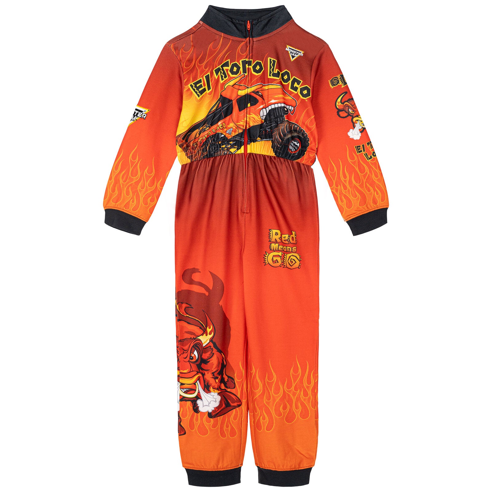 - Officially licensed Monster Jam El Toro Loco toddler boys long sleeve one-piece coverall