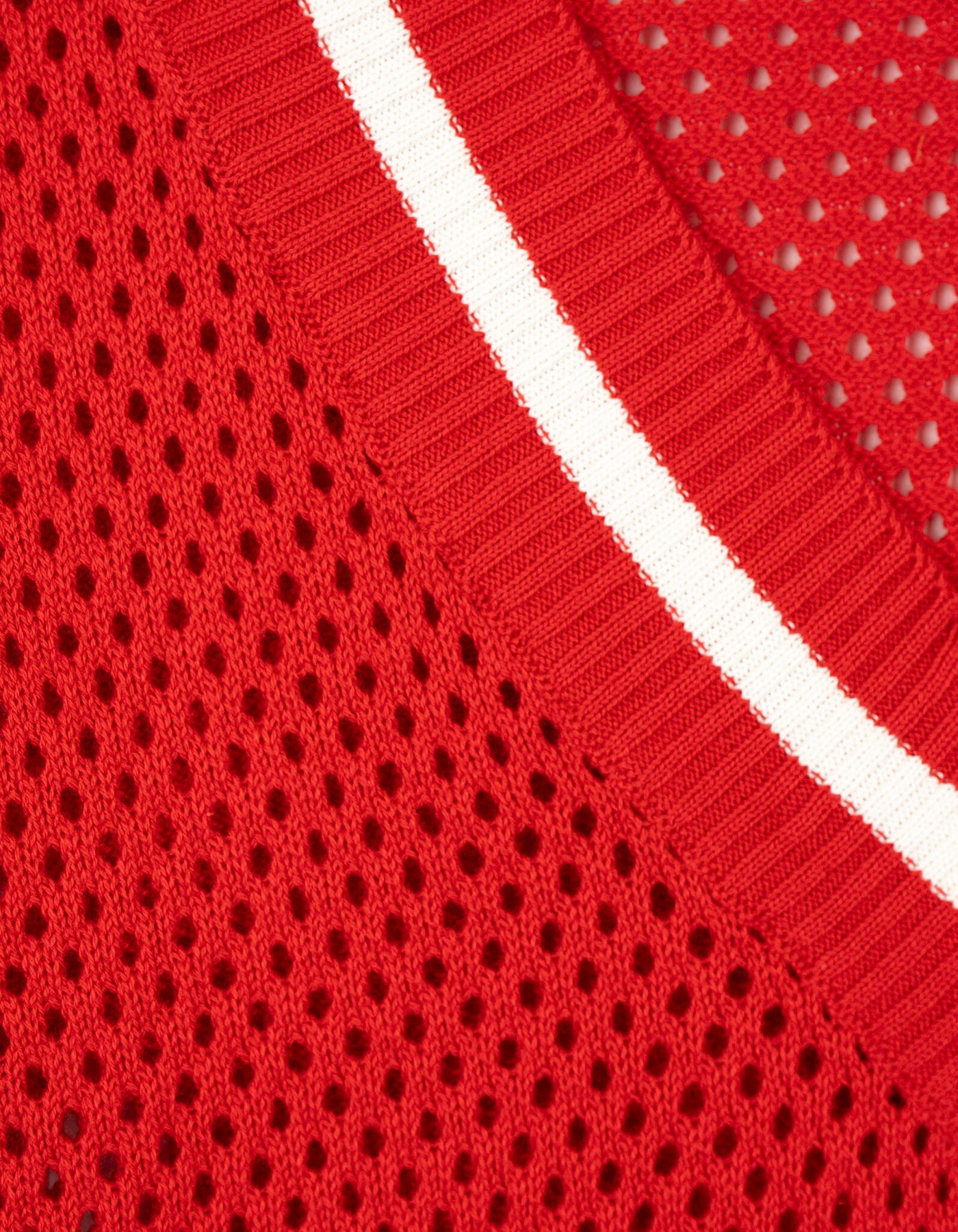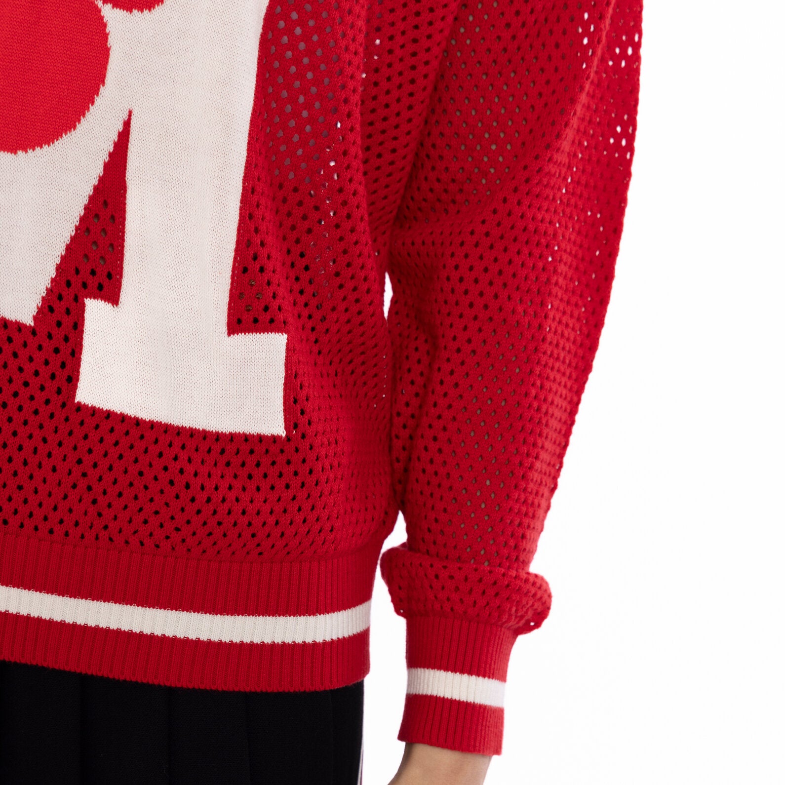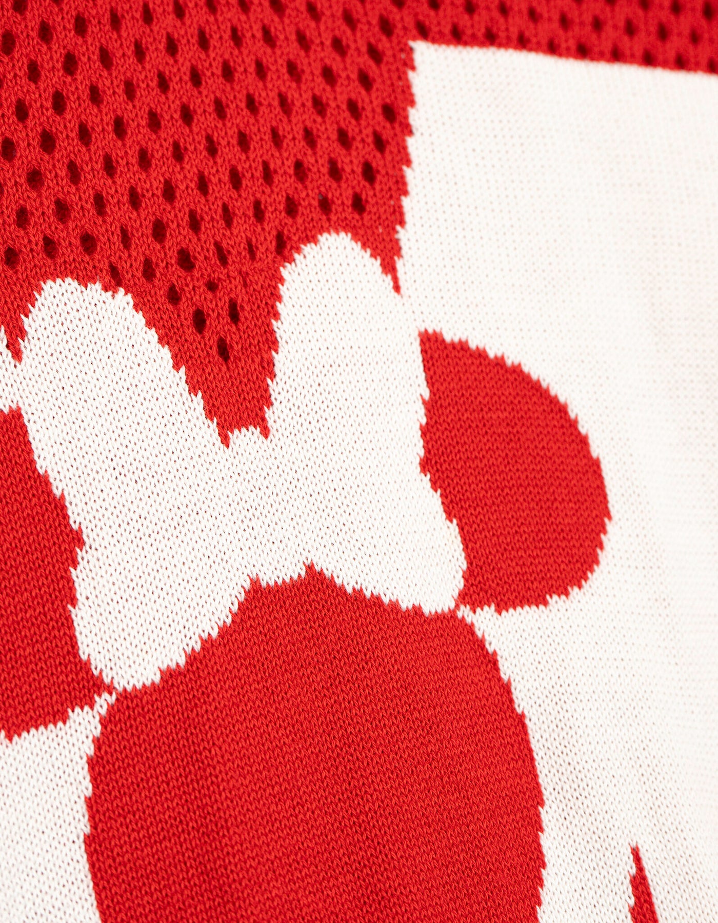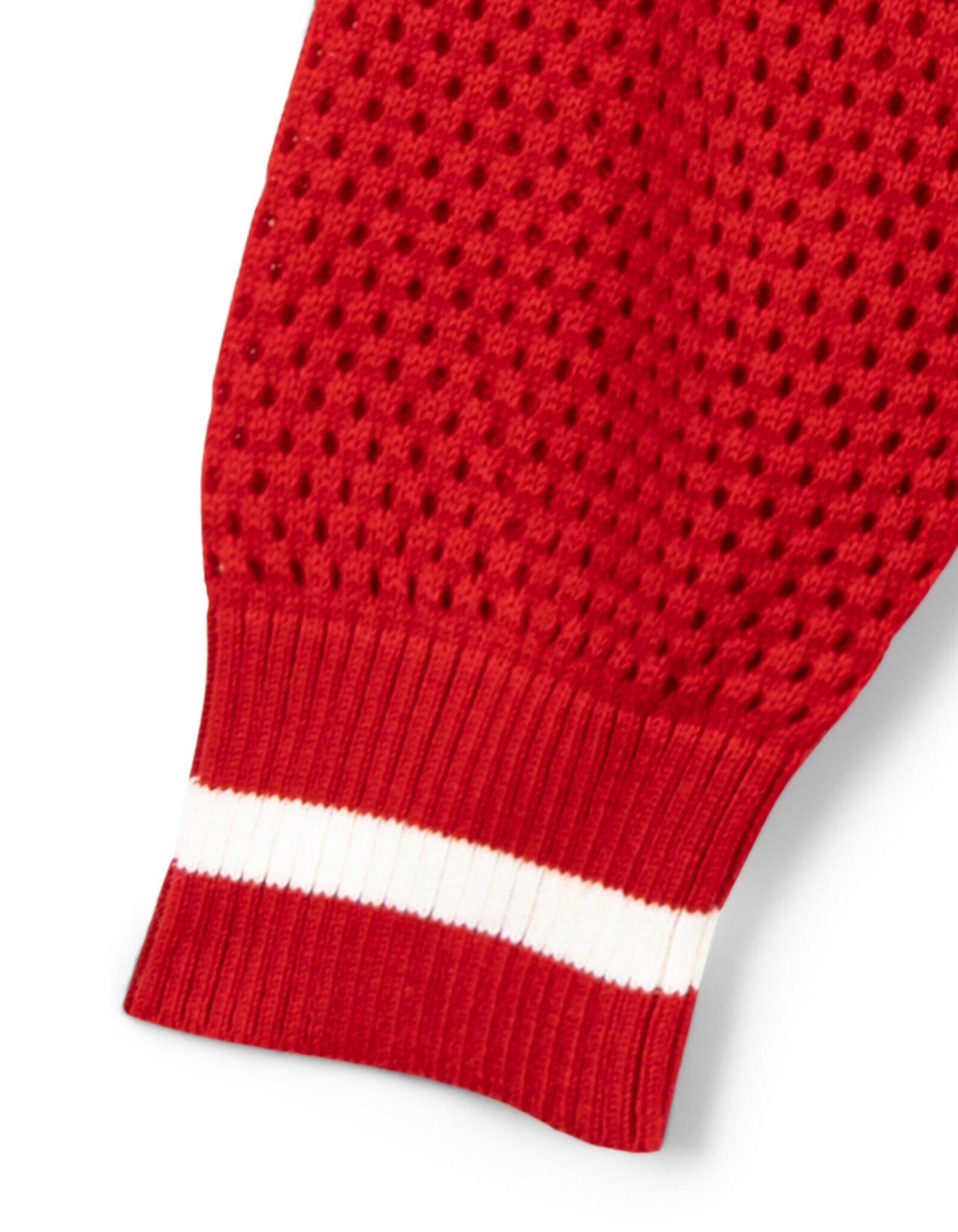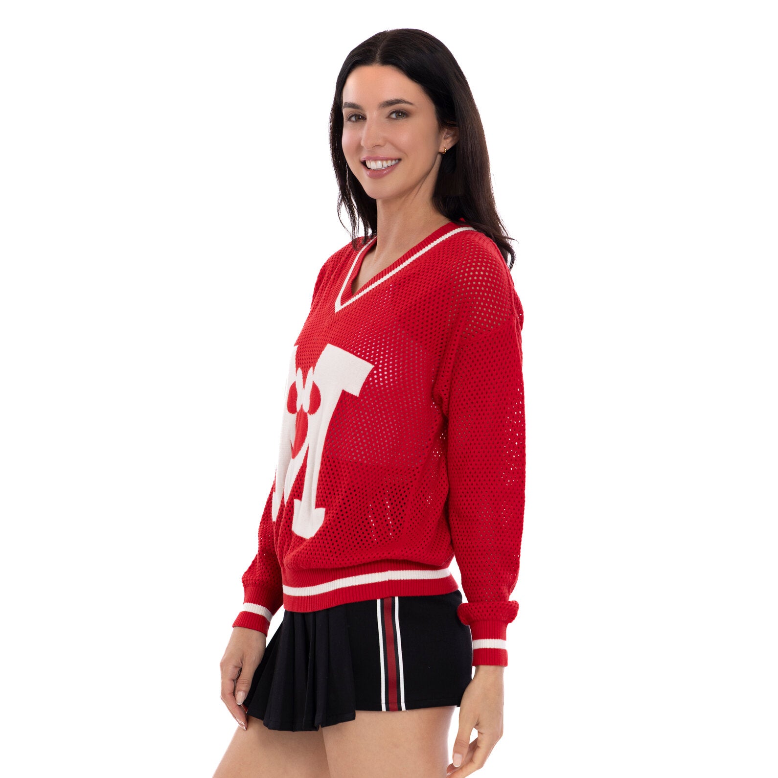 Disney Minnie Mouse Crochet Varsity V-neck Pullover Long Sleeve Sweater Adult