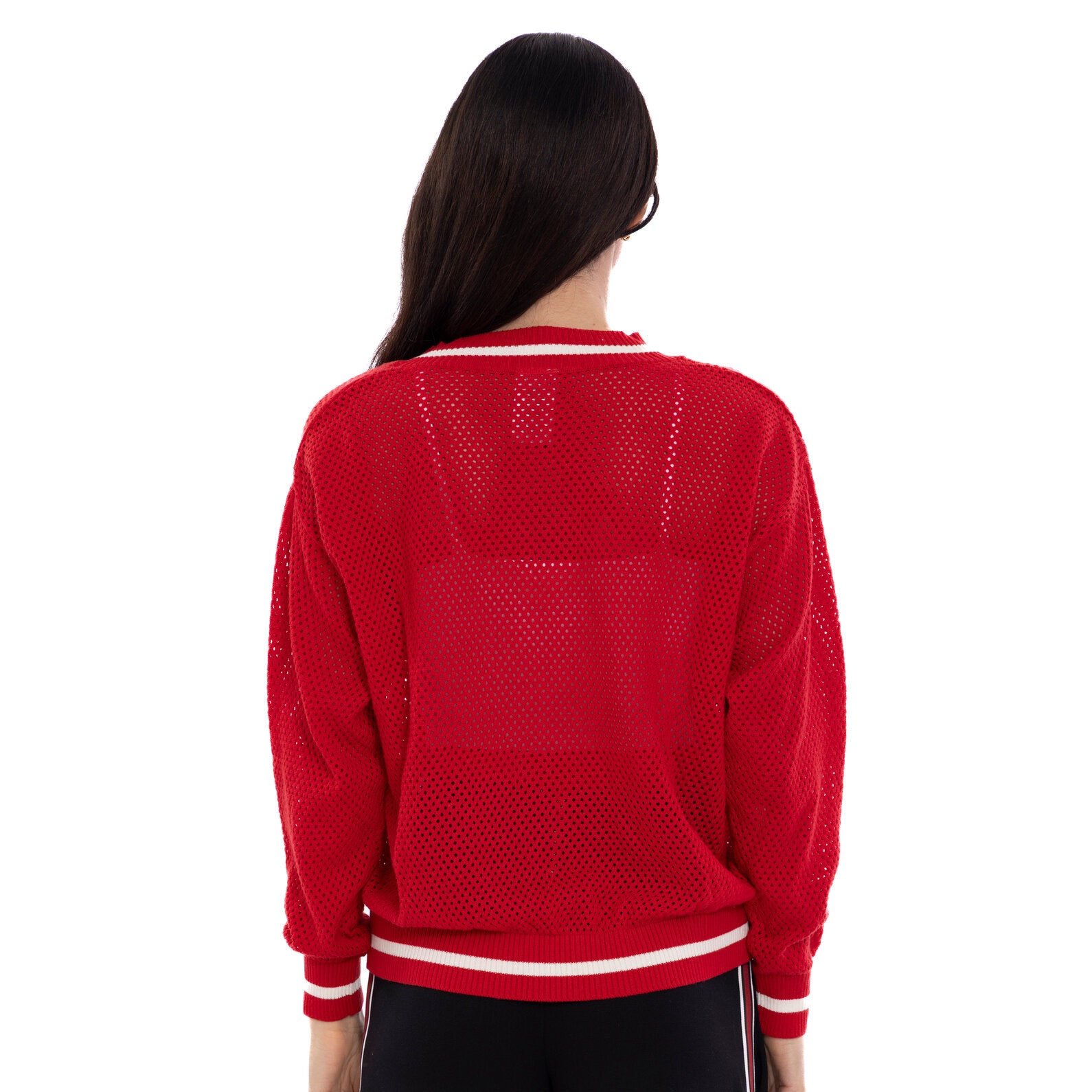 Stay cozy and stylish with this Disney Minnie Mouse Crochet Varsity V-neck Long Sleeve Sweater for adults. Featuring a classic varsity design and a cute Minnie Mouse graphic, this crochet sweater is perfect for any Disney fan. The long sleeves will keep you warm on chilly days, while the V-neck adds a touch of femininity. Made with high-quality materials, this sweatshirt is both comfortable and durable. Show off your love for Minnie Mouse while staying fashion-forward with this must-have piece.