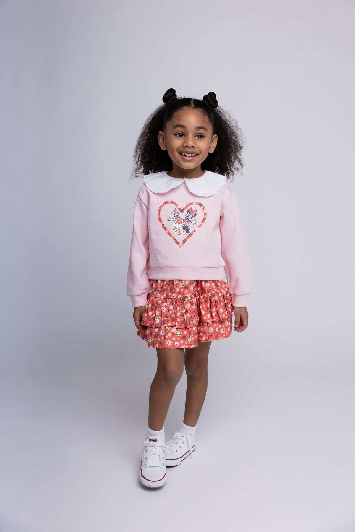 • Officially licensed Disney Minnie Mouse toddler girls long sleeve graphic sweatshirt and skirt