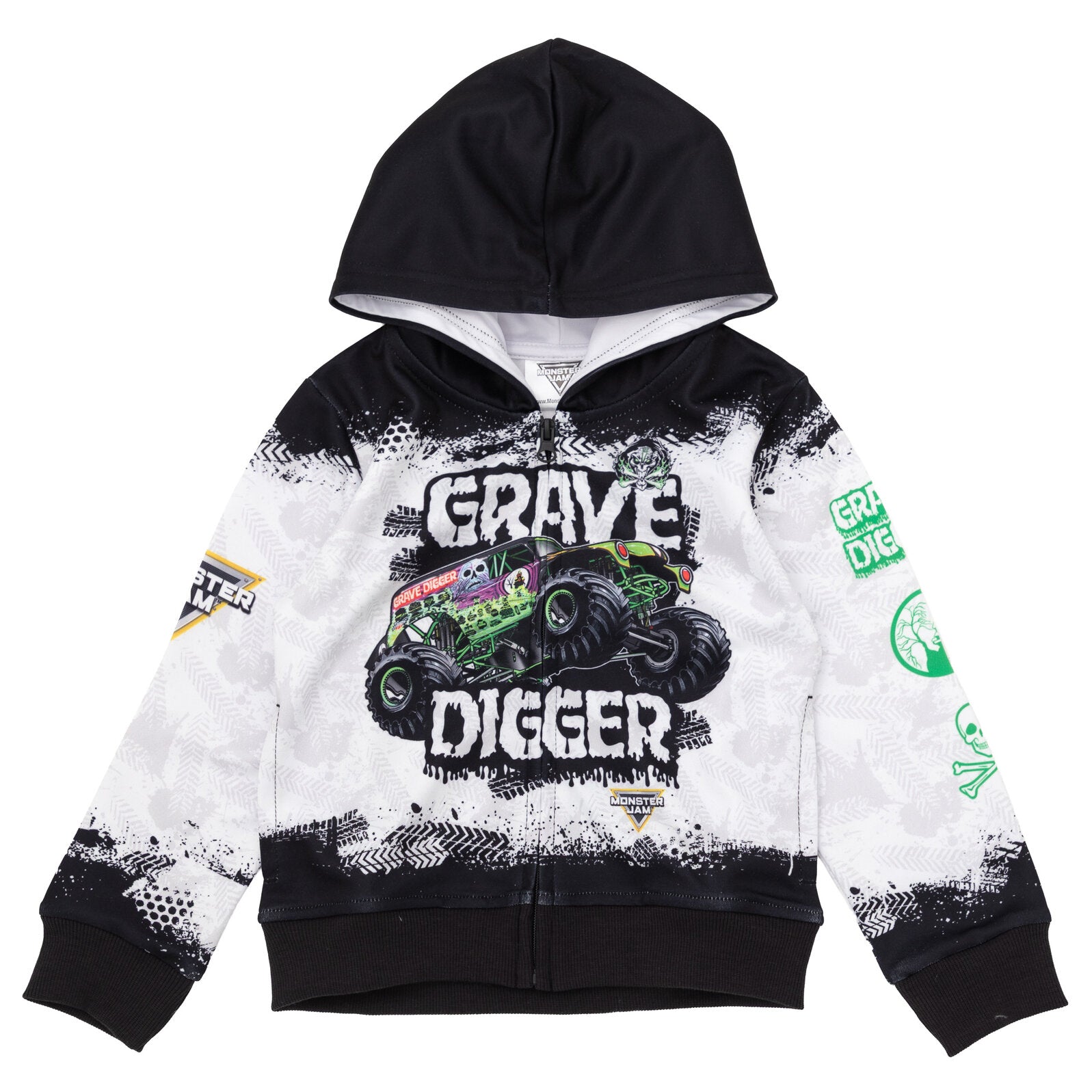 • Officially licensed Monster Jam Grave Digger toddler boys long sleeve graphic hooded sweatshirt