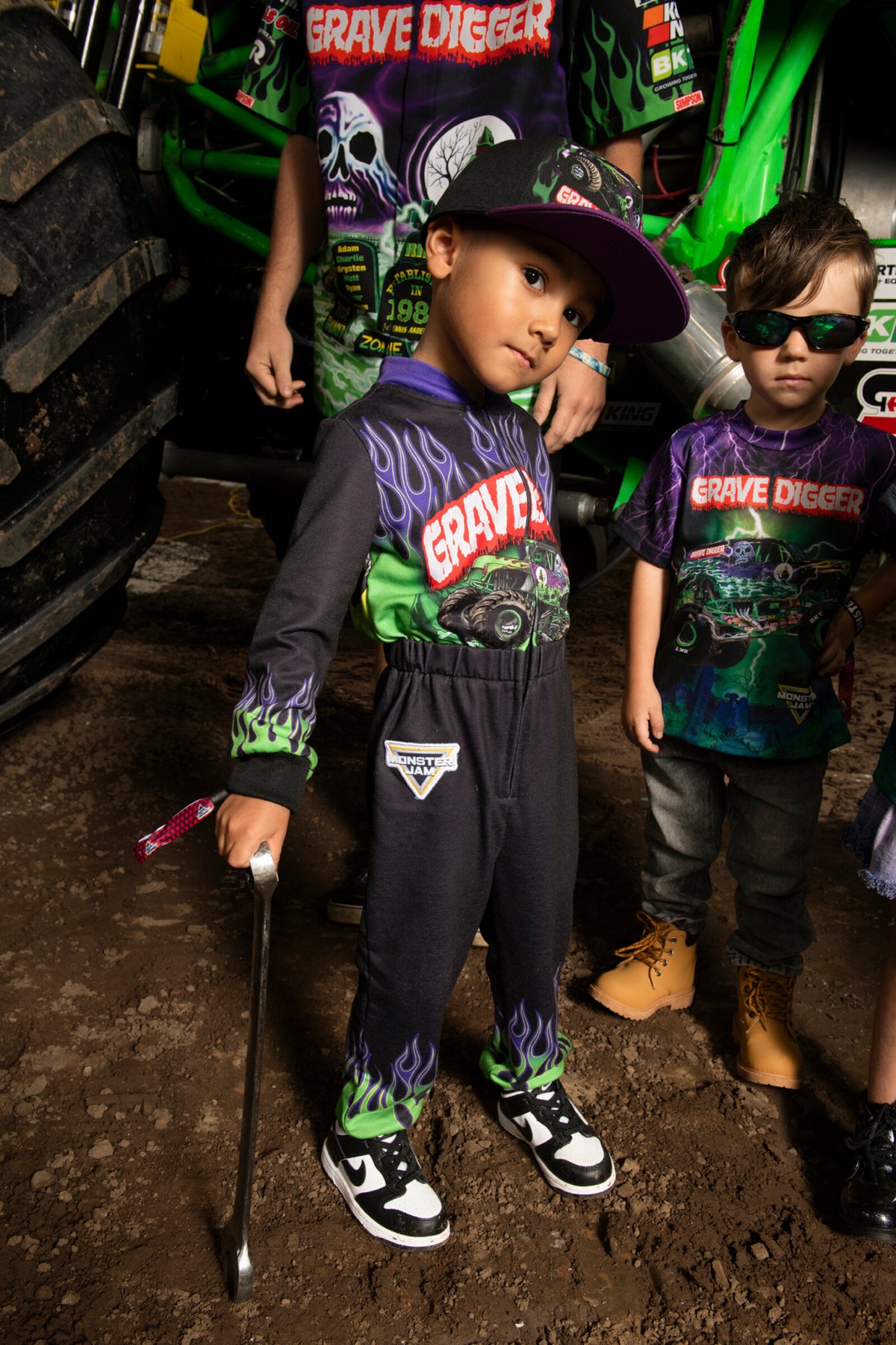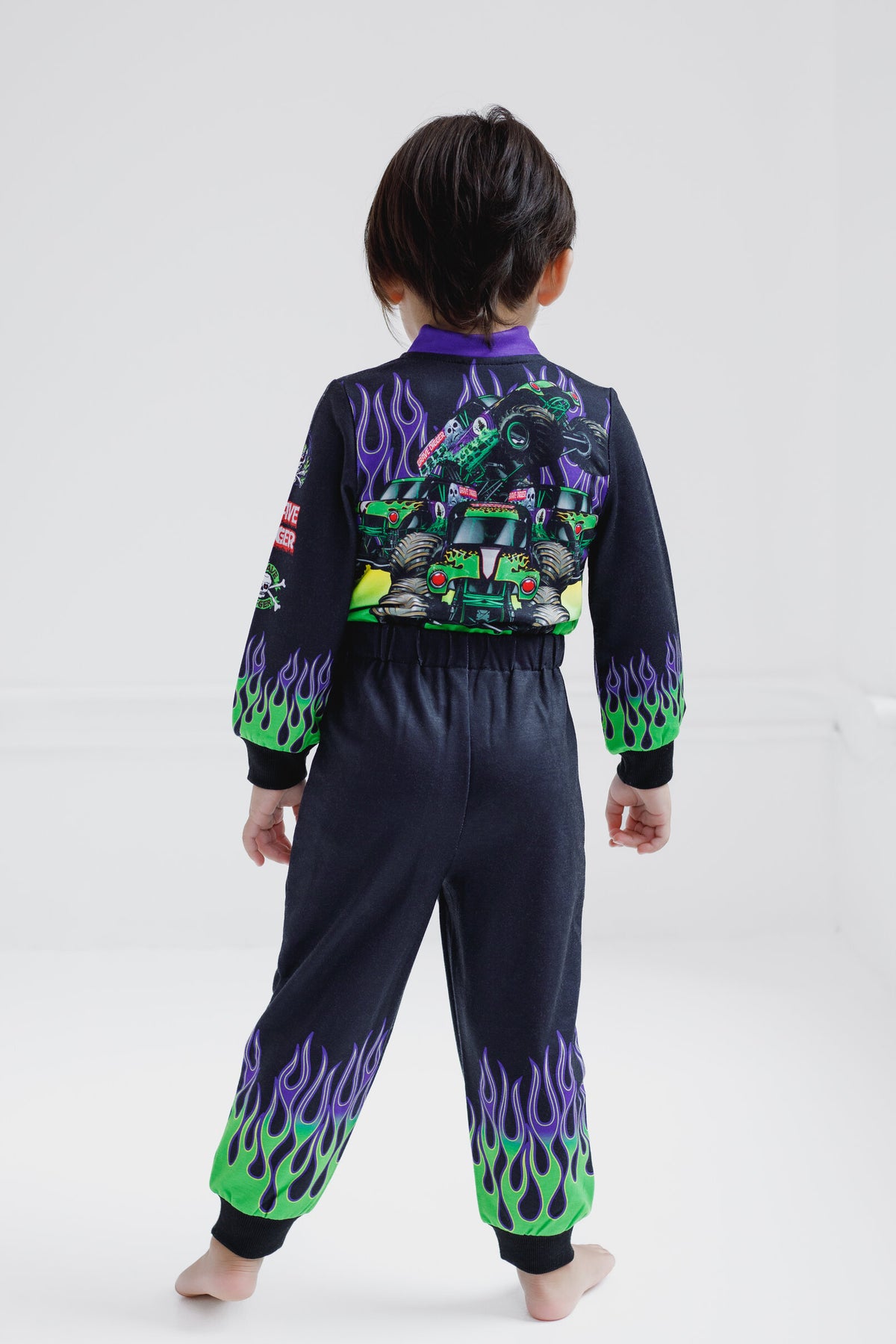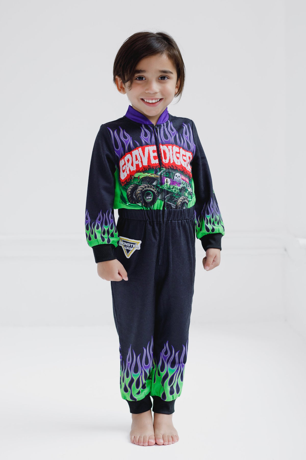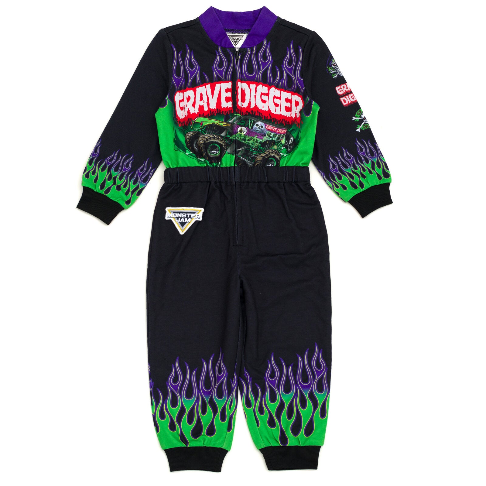 Monster Jam Grave Digger French Terry Racing Zip Up Coverall Infant to Big Kid