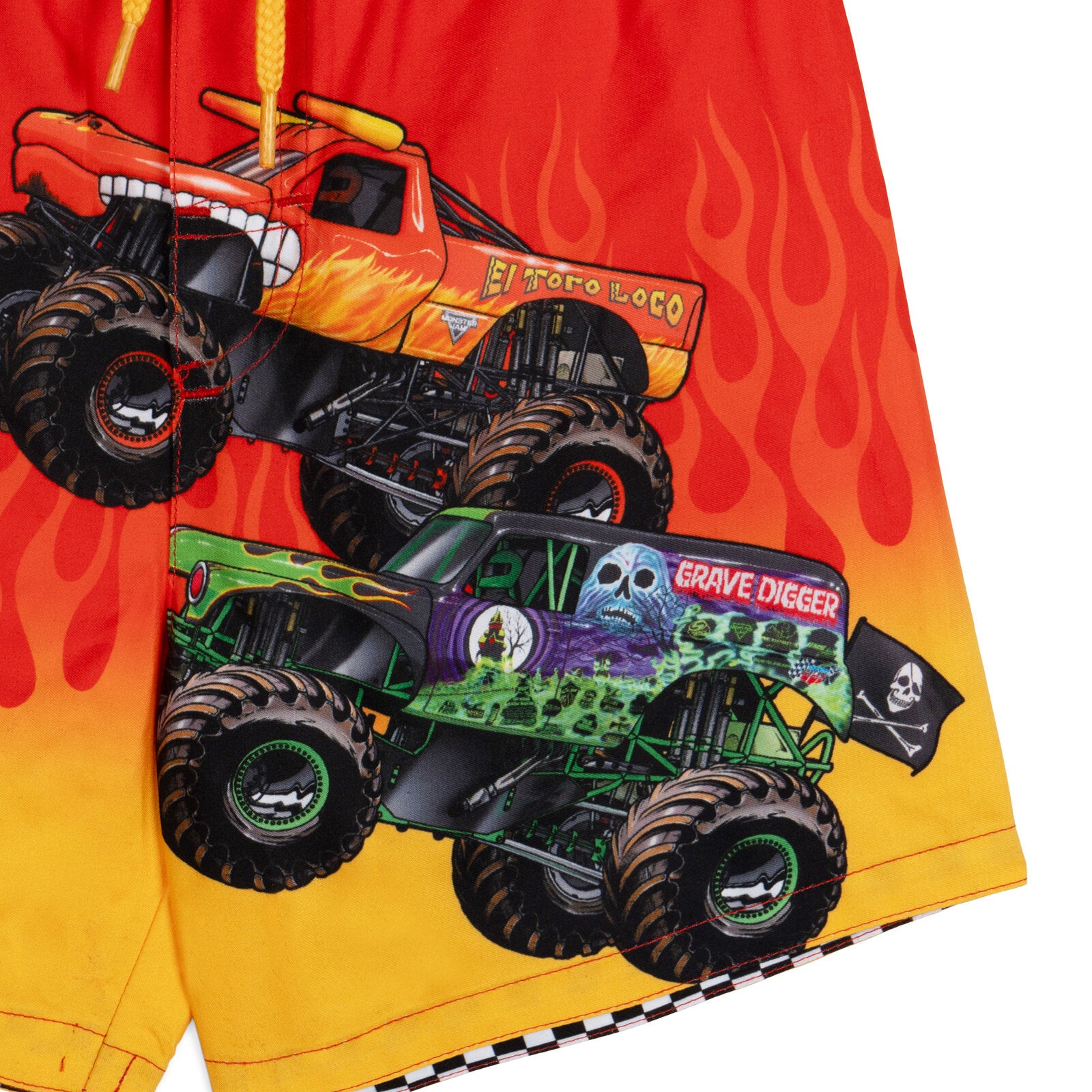 • Officially licensed Monster Jam Grave Digger El Toro Loco toddler boys swimming shorts bottoms