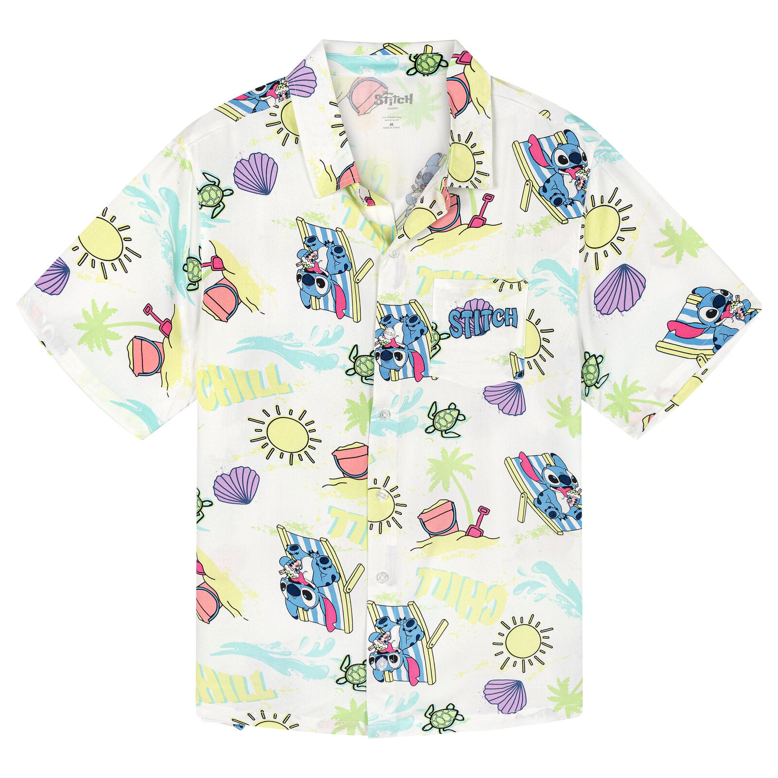 - Officially licensed Disney Stitch men's collared short sleeve button down dress shirt