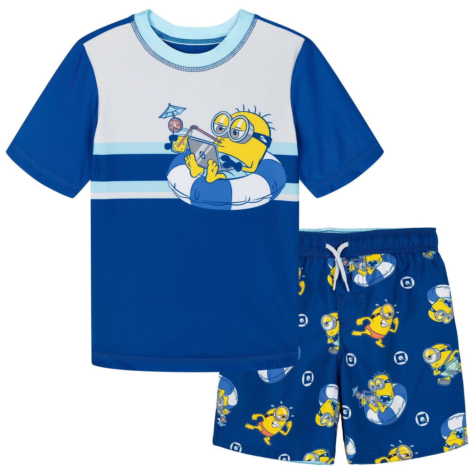 • Officially licensed Minions toddler boys short sleeve swim shirt top and swimming shorts bottoms