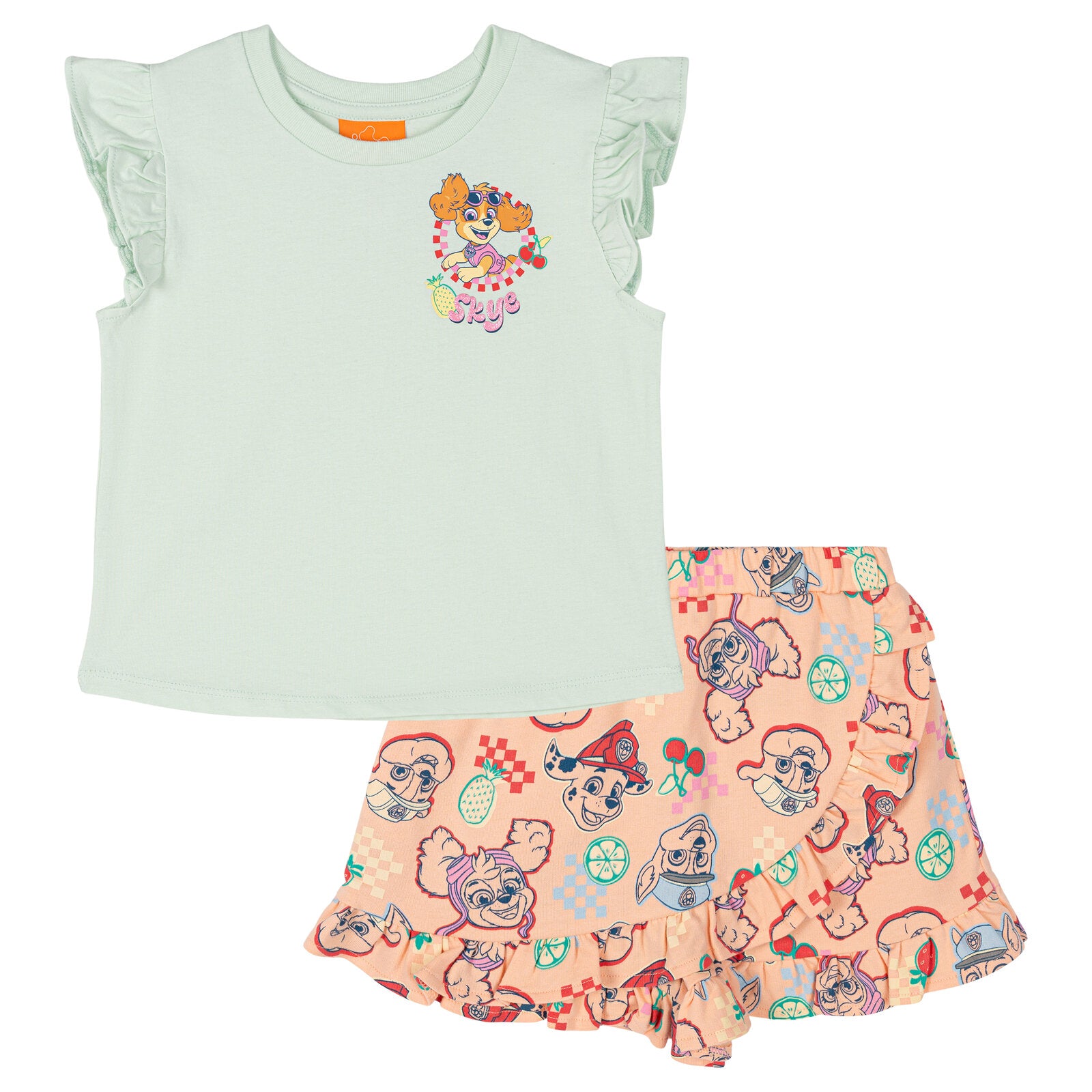 - Officially licensed Paw Patrol Skye Chase Marshall Rubble toddler girls short sleeve graphic tee shirt and skort skirt