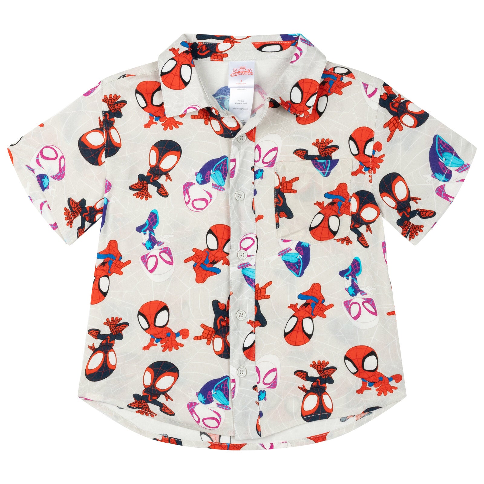 - Officially licensed Marvel Spider-Man Miles Morales Ghost-Spider toddler boys collared short sleeve button down dress shirt