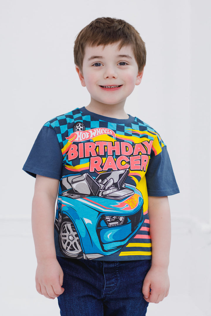Ready?Set?Go! Celebrate your special day in style with this fashionable Hot Wheels birthday shirt! This cool short sleeve tee features the iconic Hot wheels logo, the words "Birthday Racer," and vibrant artwork of a classic racing car that your kid will be excited to wear! Dressed in this soft and comfy Hot Wheels tshirt, your race car fan is ready for an exciting action-packed birthday adventure! HOT WHEELS (TM) and associated trademarks and trade dress are owned by, and used under license from, Mattel. (c) 2024 Mattel.