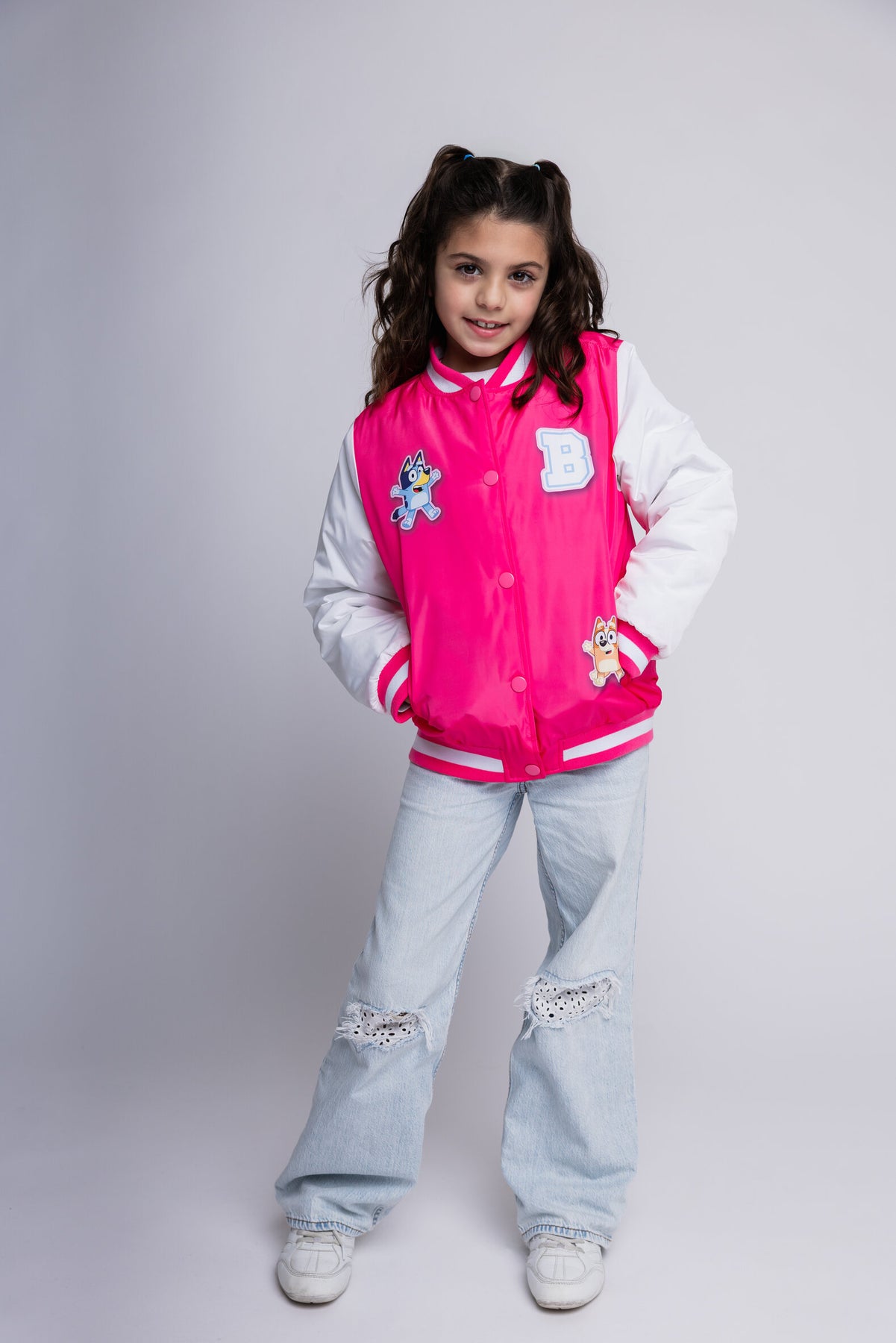 • Officially licensed Bluey Bingo toddler girls long sleeve letterman jacket