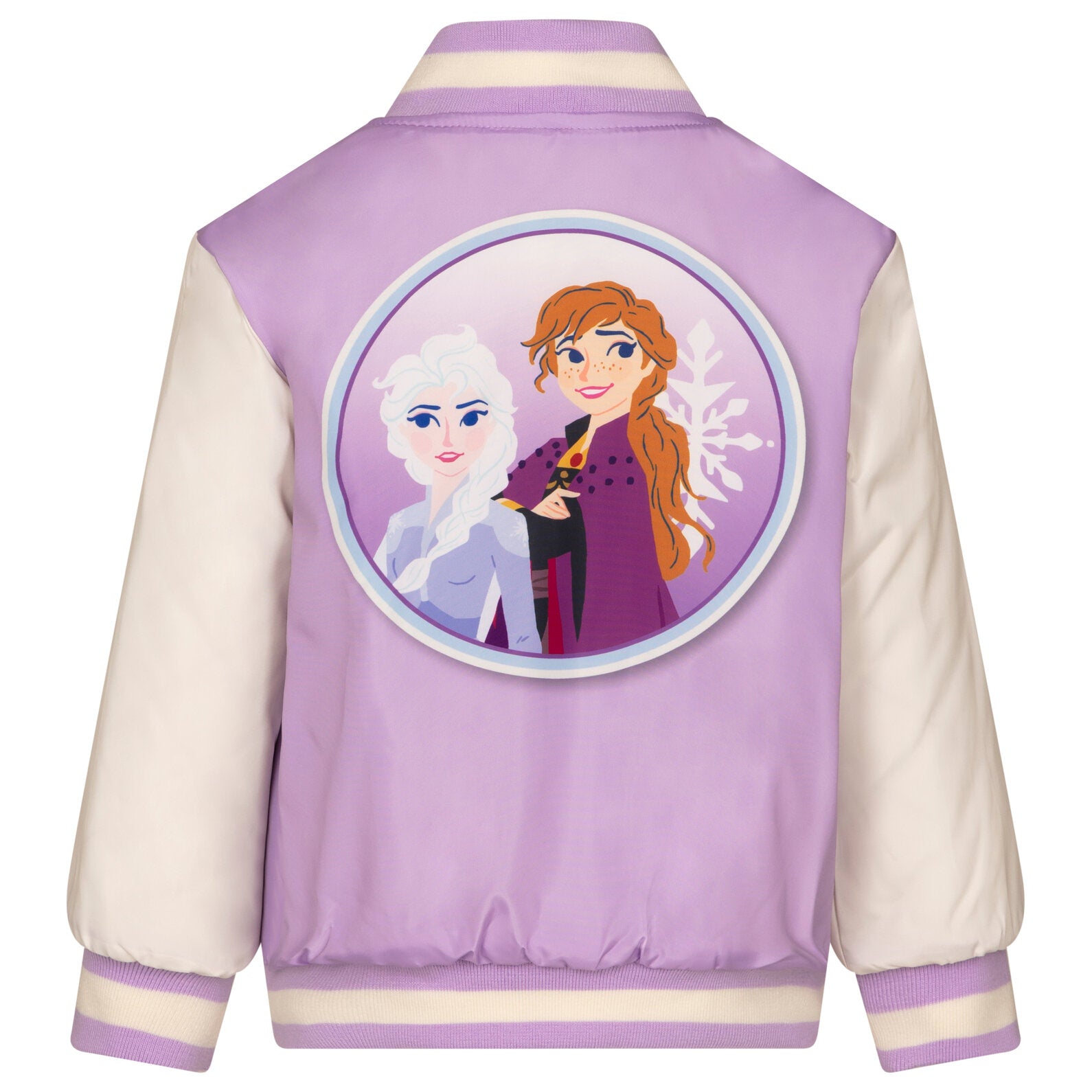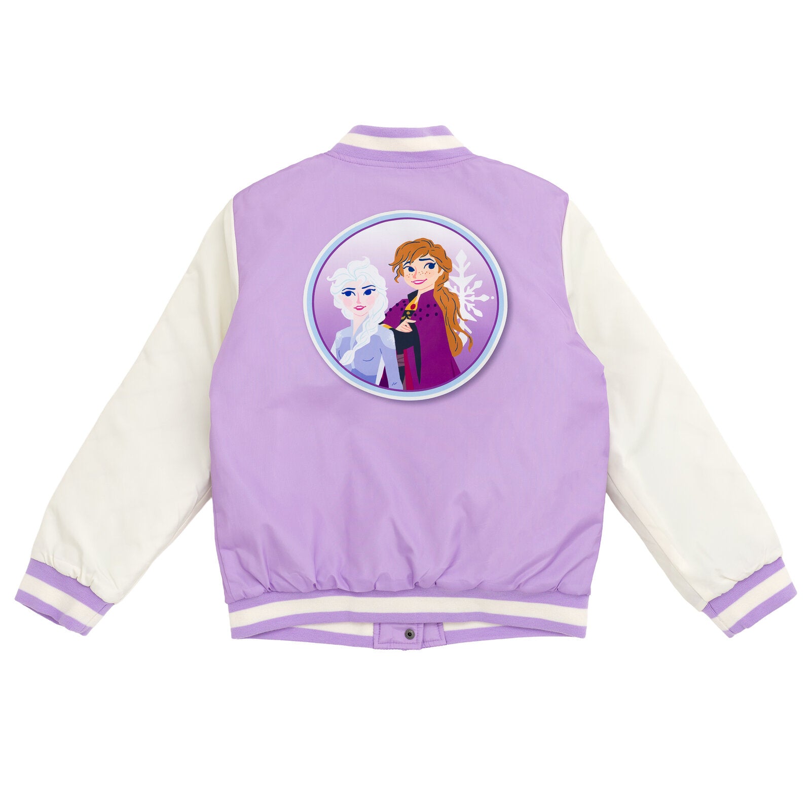 Your little one will feel like a true princess in this Disney Frozen varsity jacket. Featuring a vibrant image of Elsa and Anna, this letterman jacket is perfect for any Frozen fan. Made with a comfortable and durable fabric, it's perfect for toddlers and little kids. The varsity style adds a trendy touch, while the ribbed cuffs and hem provide a snug fit. Let your child show off their love for Frozen with this stylish and cozy bomber jacket.