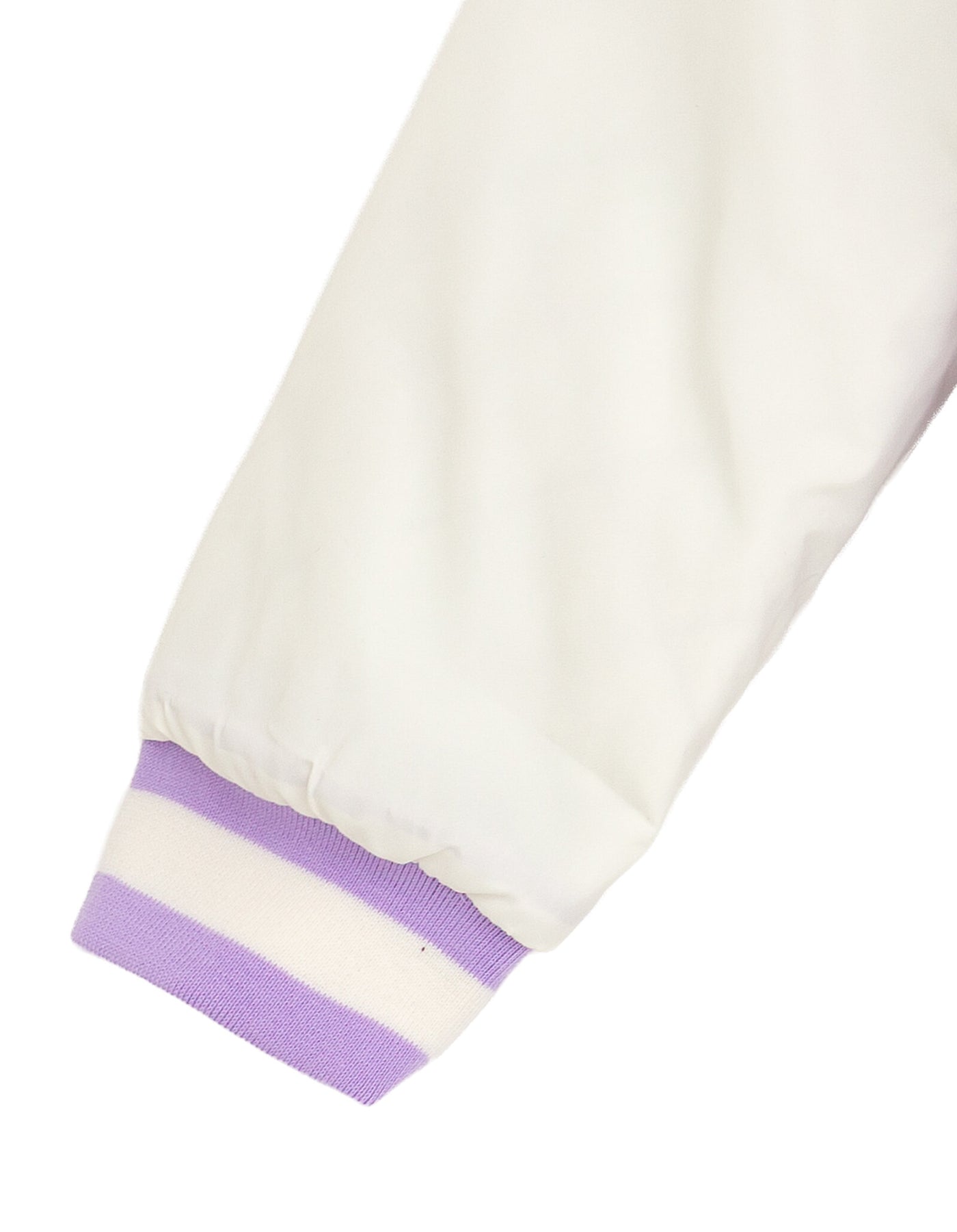 • Ribbed sleeve cuffs and waist for a better fit; Functional pockets; Snap button front closure for easy dressing; Cool sublimated patch artwork; Vintage-style varsity jacket; Taffeta lining