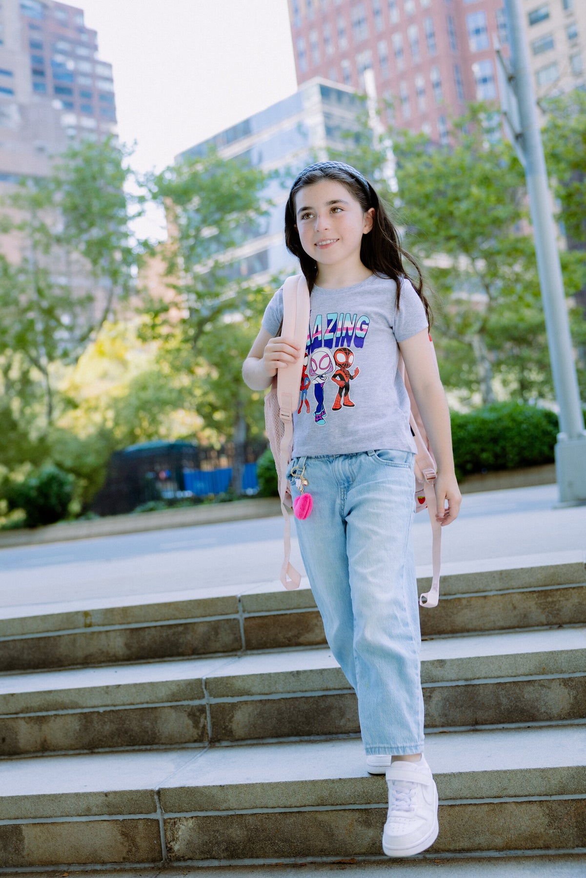 ¡Únete a Spidey y los superhéroes de Marvel Comics en sus emocionantes aventuras! Vestido con esta camiseta gráfica de manga corta de Spiderman, tu hijo se unirá a Peter Parker y sus amigos Miles Morales, Gwen Stacey, también conocido como Ghost-Spider, Hulk, Ms. Marvel y Black Panther para salvar el día. A tu pequeño héroe le encantará usar esta camiseta gráfica de manga corta con sus personajes animados favoritos de Spidey y sus increíbles amigos.