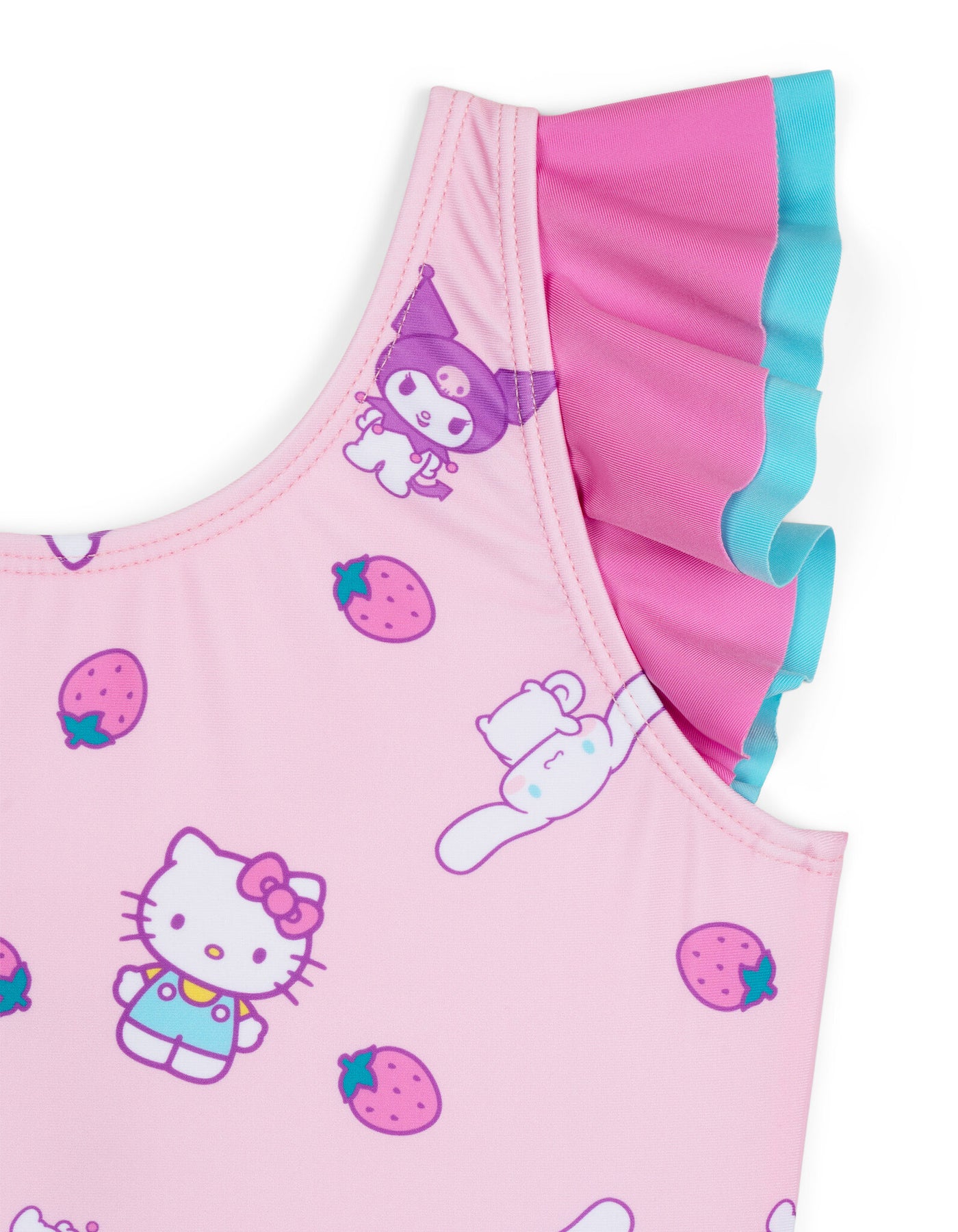 - Officially licensed Hello Kitty Kuromi Cinnamoroll little girls one piece swimming suit