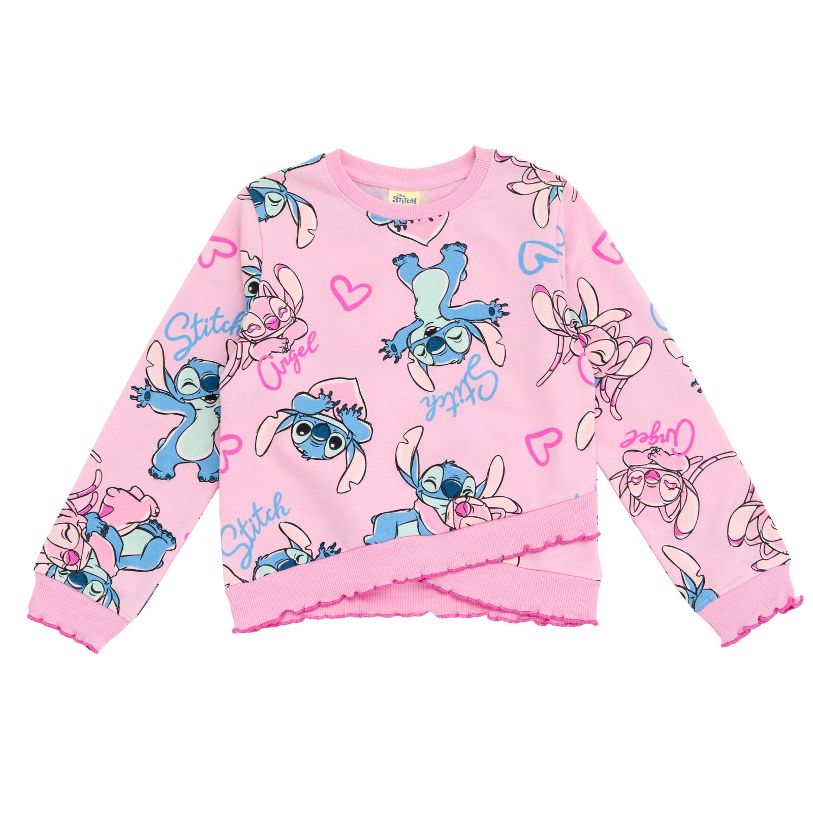 Lilo & Stitch Girls Fleece Pullover Crossover Sweatshirt and Pants Outfit Set Toddler to Big Kid