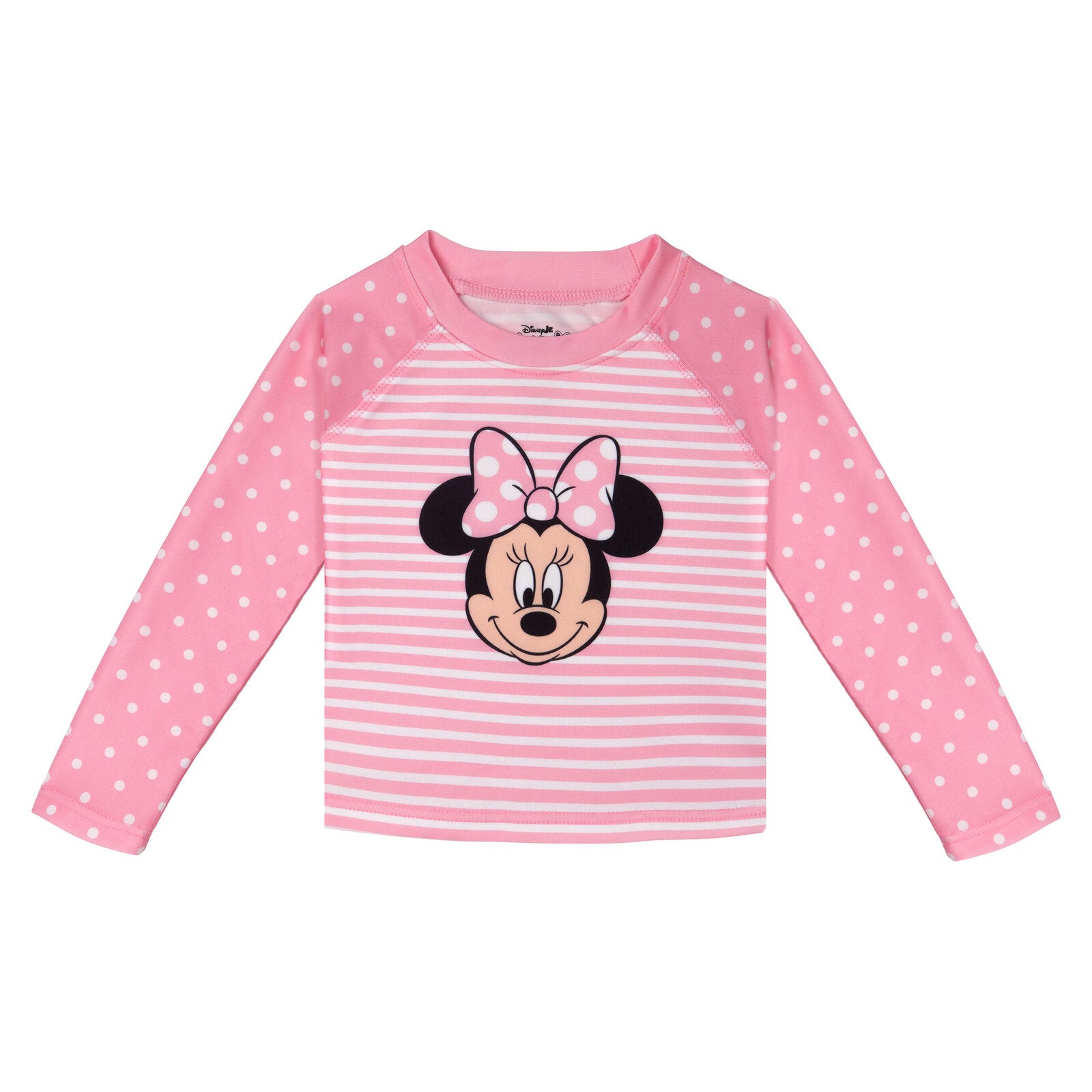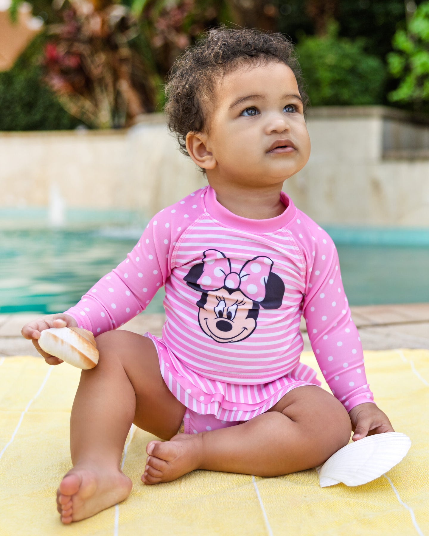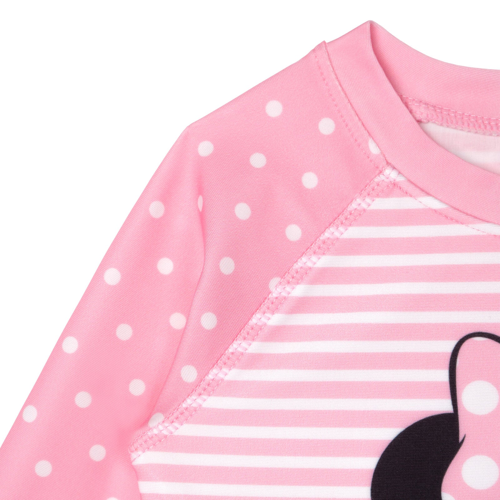 • Officially licensed Disney Minnie Mouse newborn and infant long sleeve swim shirt top and full coverage bottom