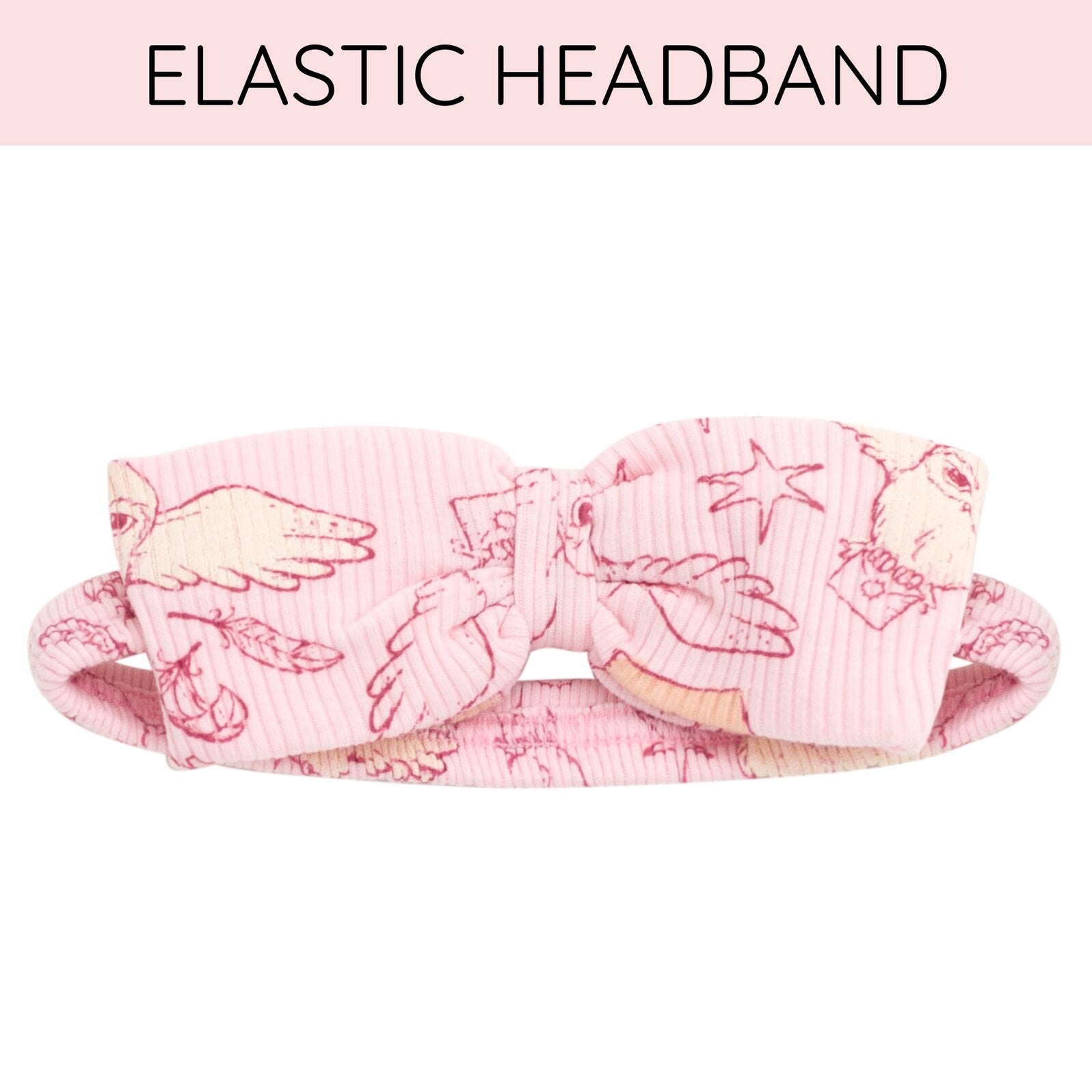 • All over print design; Lap shoulders for easy dressing; Fashionable ruffle sleeves; 3-snap closure for quick and easy diaper changes; Elastic headband with fashion bow; Rib knit crew neck collar; Soft hand screen print design; Elastic waist for comfortable stretch and a better fit; Soft ribbed knit fabric for a stylish textured look and comfy stretch; Roll up cuffs