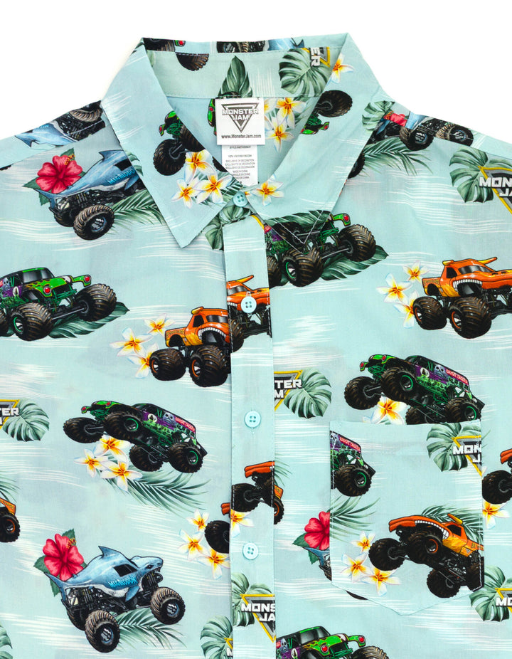 Monster Jam Matching Family Hawaiian Button Down Dress Shirt