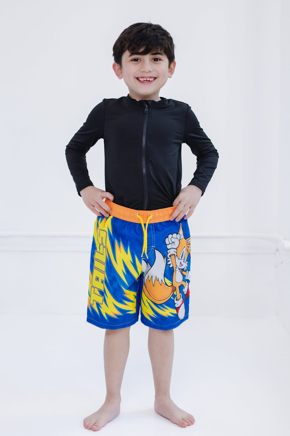 SEGA Sonic the Hedgehog UPF 50+ Rash Guard and Swim Trunks Outfit Set