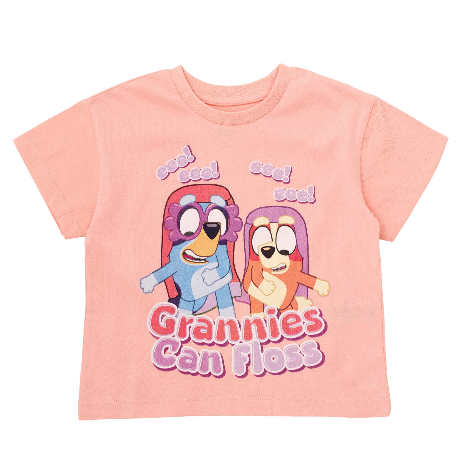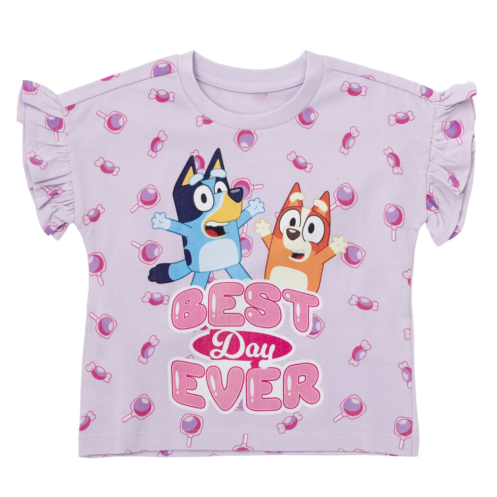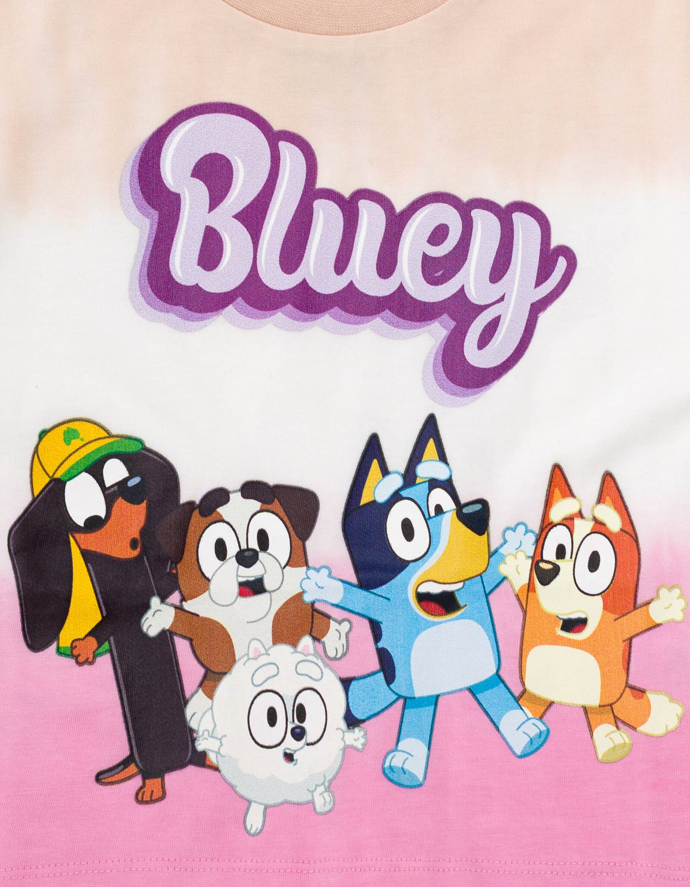 • Officially licensed Bluey Bingo Muffin Pom Pom Snickers Rusty Winston toddler girls short sleeve graphic tee shirt
