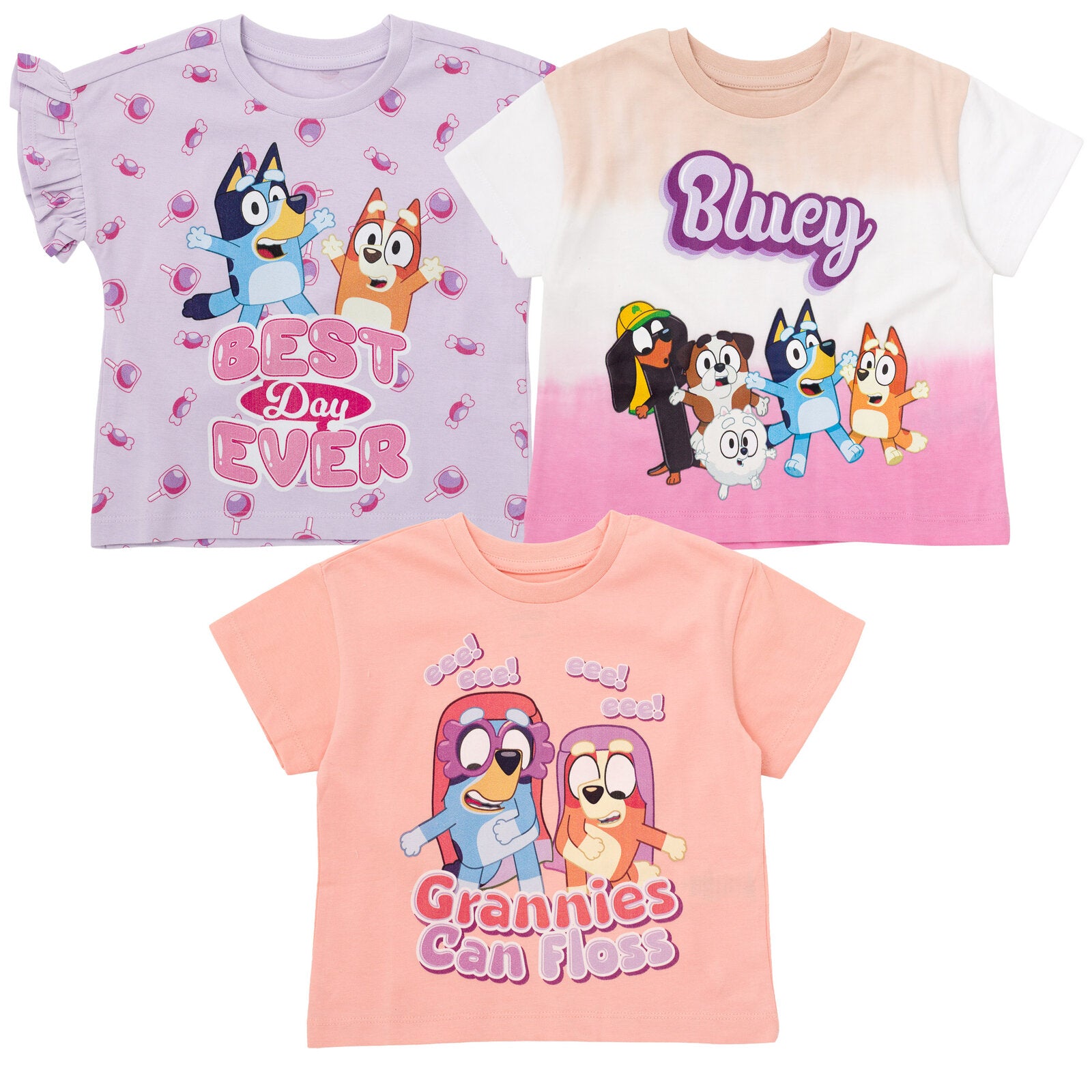 Bluey Girls 3 Pack T-Shirts Toddler to Big Kid