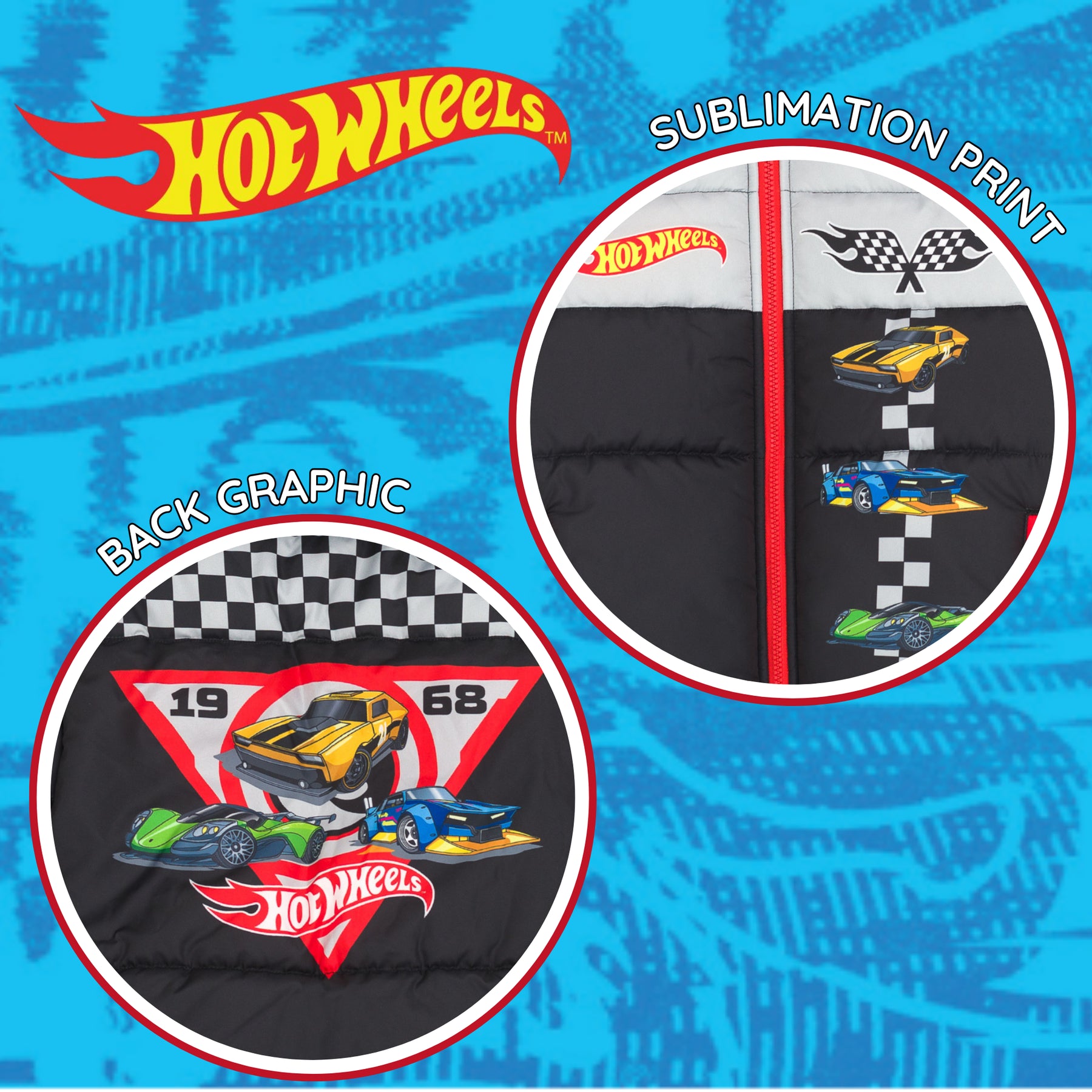 Keep your little one warm and stylish this winter with our Hot Wheels Zip Up Puffer Jacket. Designed for toddlers to big kids, this winter jacket features a trendy zip-up design and a cozy puffer style to keep them snug and comfortable. The vibrant Hot Wheels print adds a fun touch, while the durable material ensures long-lasting wear. Perfect for any outdoor adventure, this jacket is a must-have for your child's winter wardrobe. Order now and let your child zip up in style. HOT WHEELS (TM) and associated trademarks and trade dress are owned by, and used under license from, Mattel. (c) 2025 Mattel.