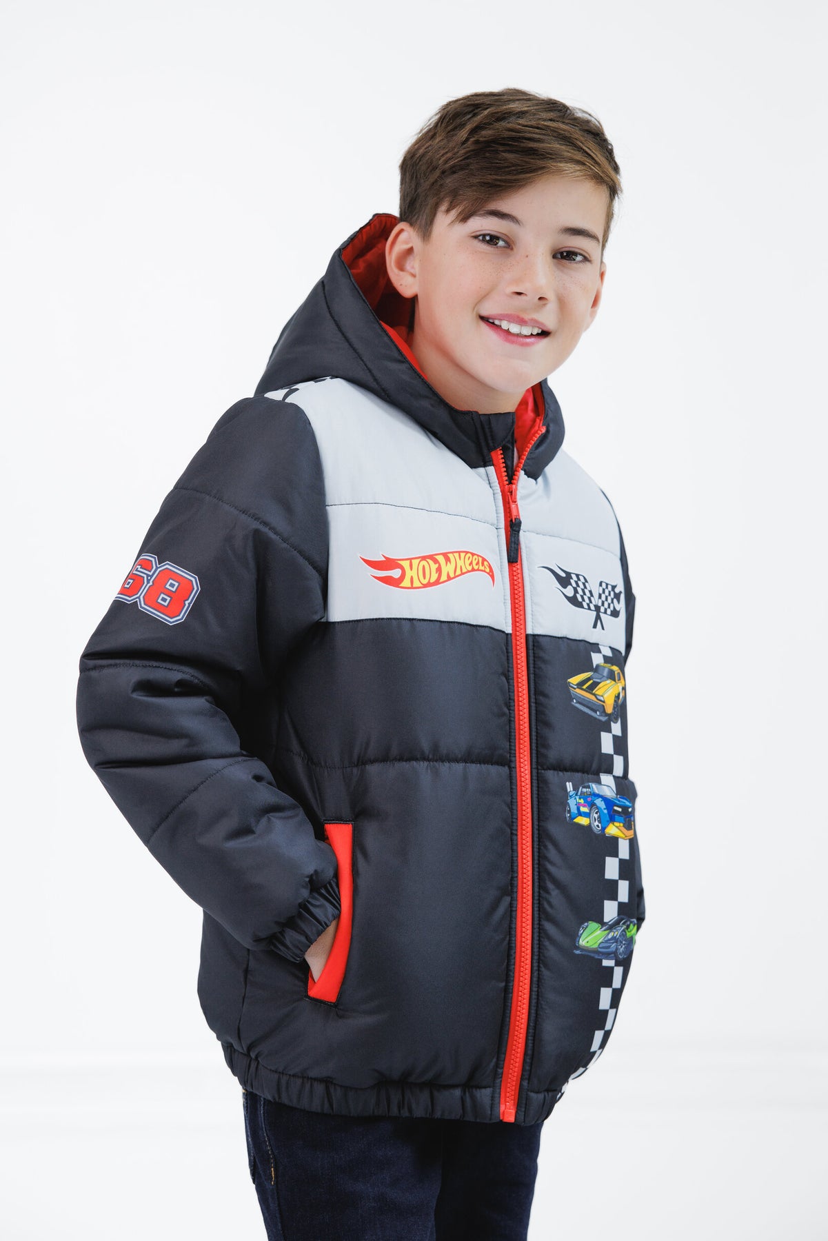 Hot Wheels Zip Up Winter Coat Puffer Jacket Toddler to Big Kid